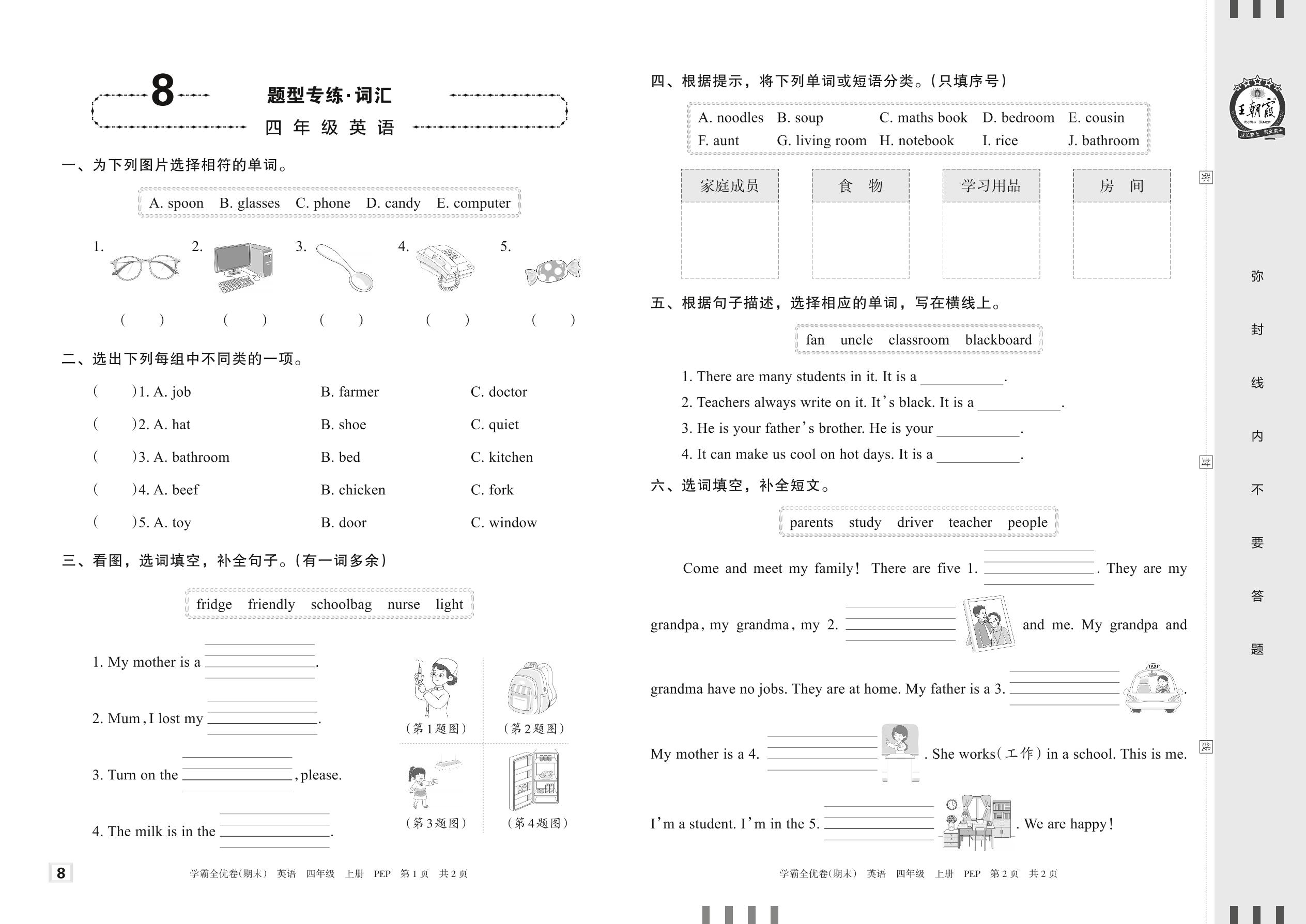 2022上册四年级英语人教PEP版 8 题型专练·词汇