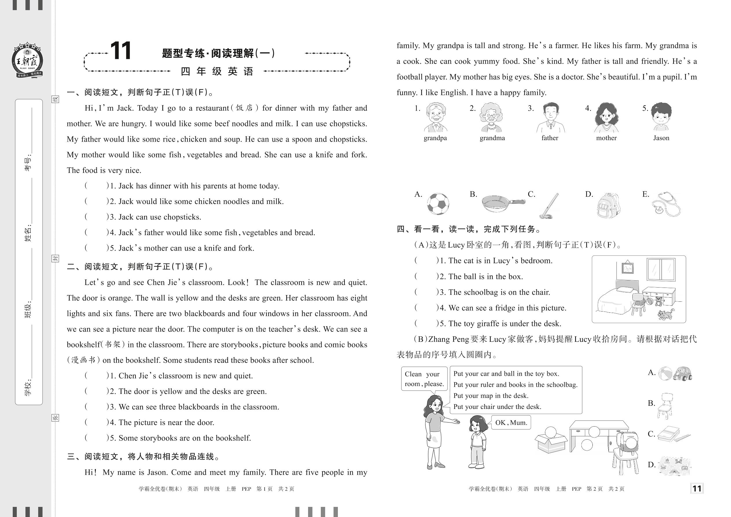 2022上册四年级英语人教PEP版 11 题型专练·阅读理解(一)
