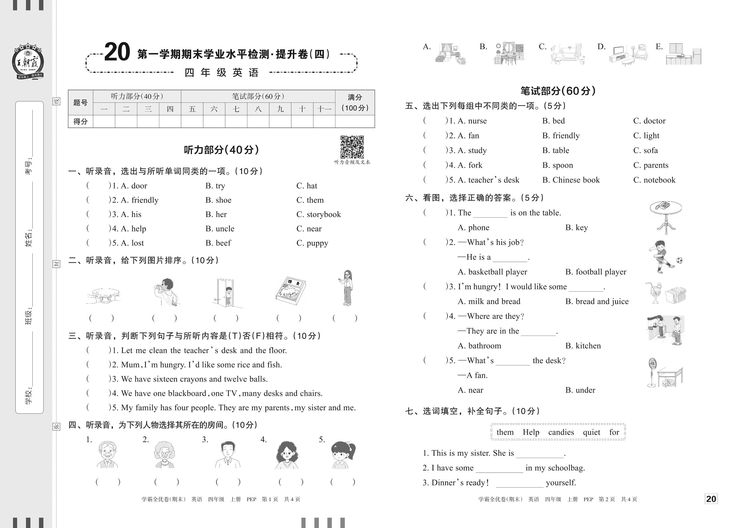 2022上册四年级英语人教PEP版 20 第一学期期末学业水平检测·提升卷(四)