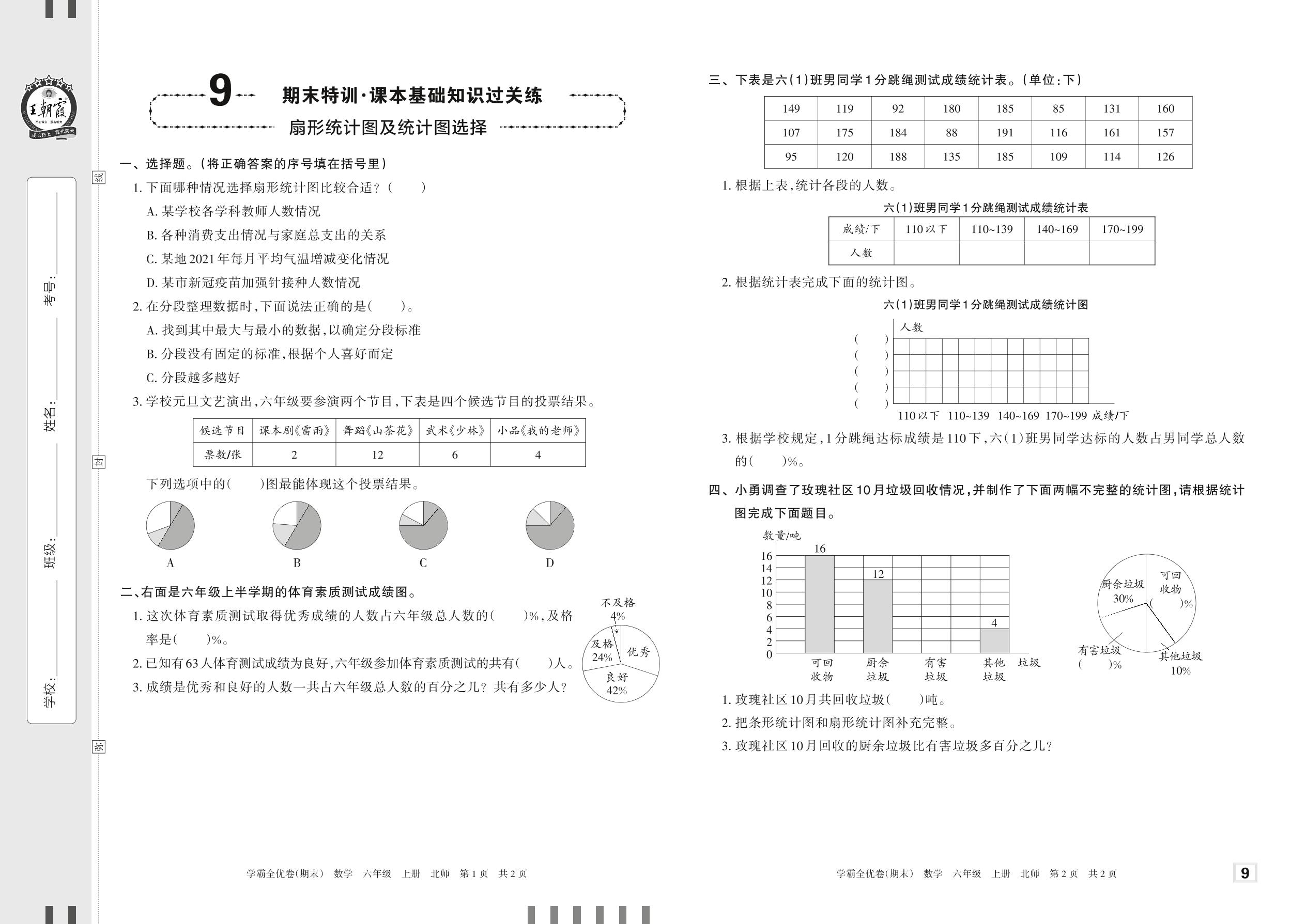 2022上册六年级数学北师版 9 期末特训·课本基础知识过关练——扇形统计图及统计图选择