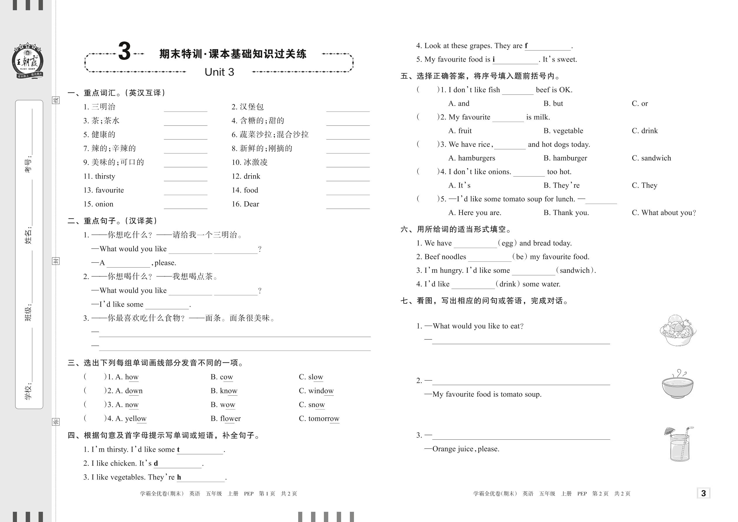 2022上册五年级英语人教PEP版 3 期末特训·课本基础知识过关练——Unit 3