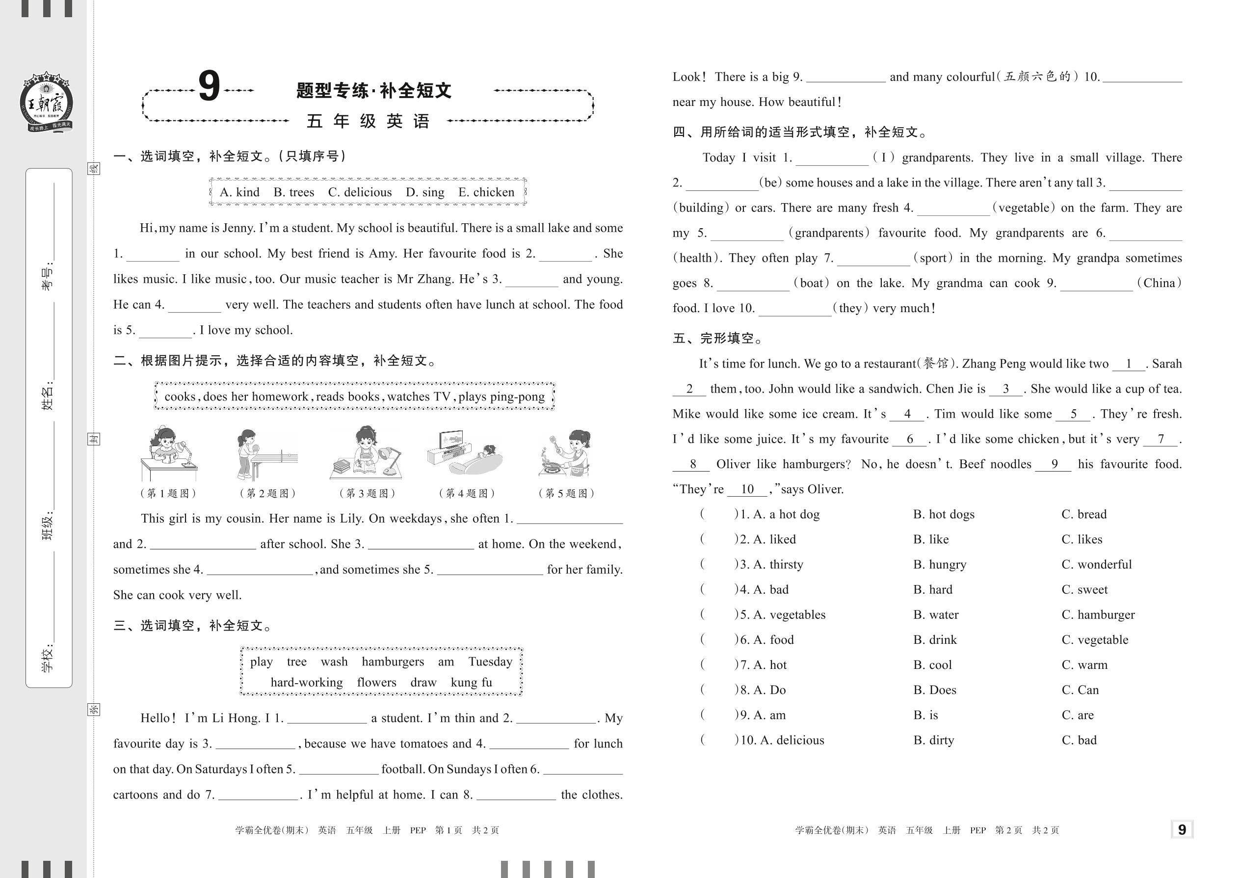 2022上册五年级英语人教PEP版 9 题型专练·补全短文