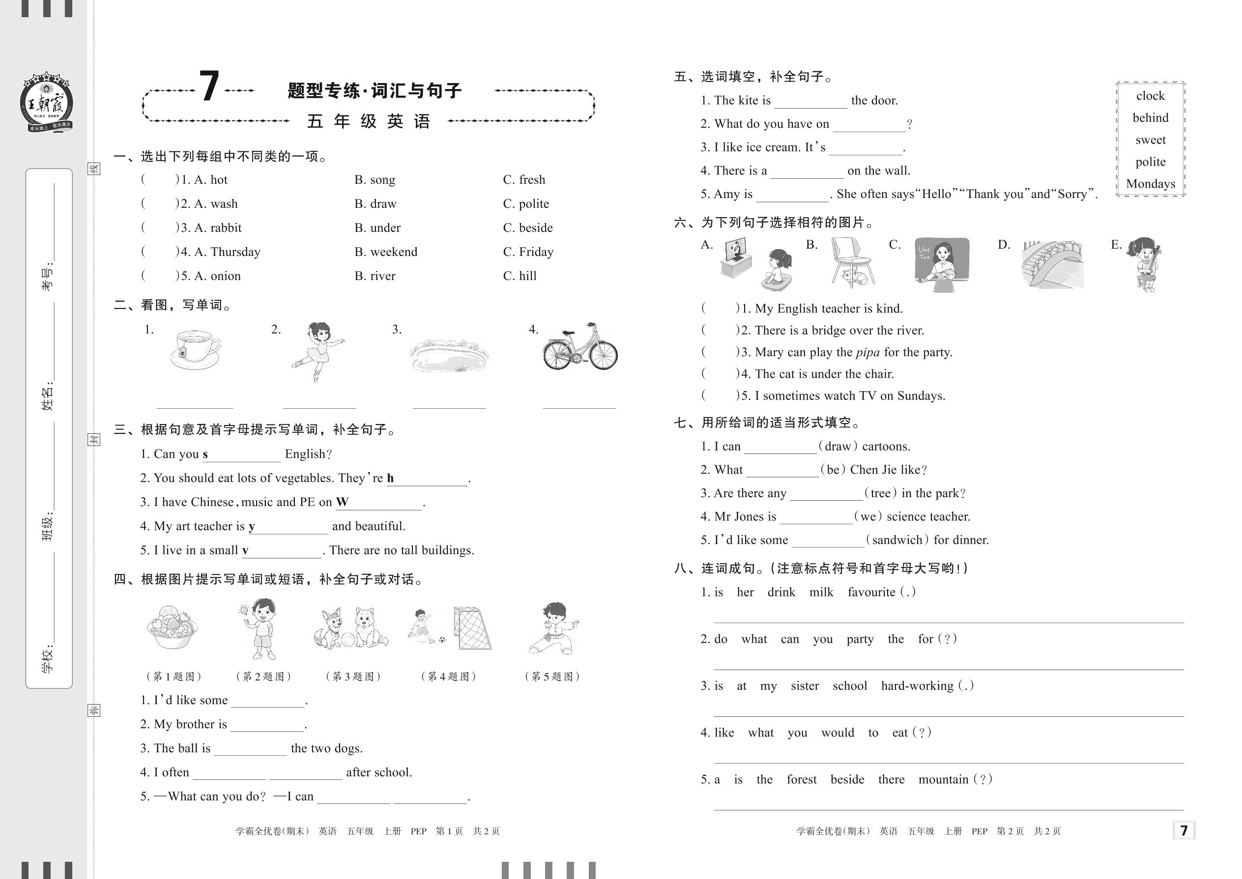 2022上册五年级英语人教PEP版 7 题型专练·词汇与句子