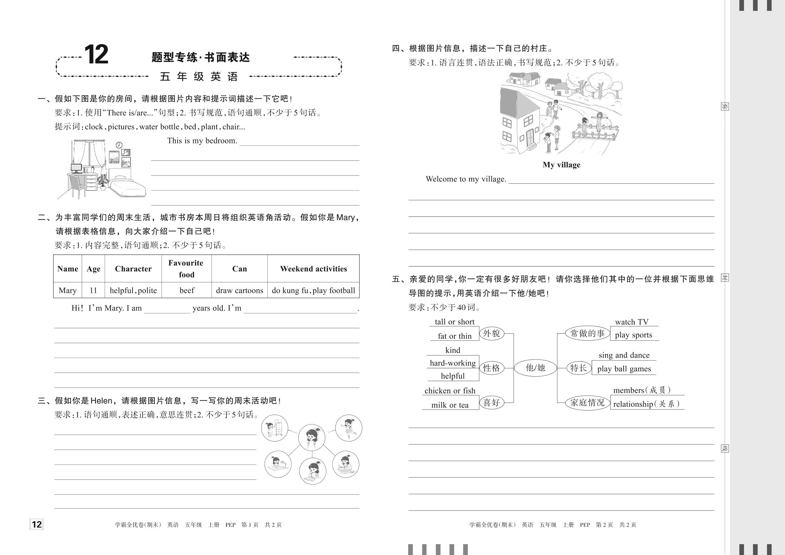 2022上册五年级英语人教PEP版 12 题型专练·书面表达