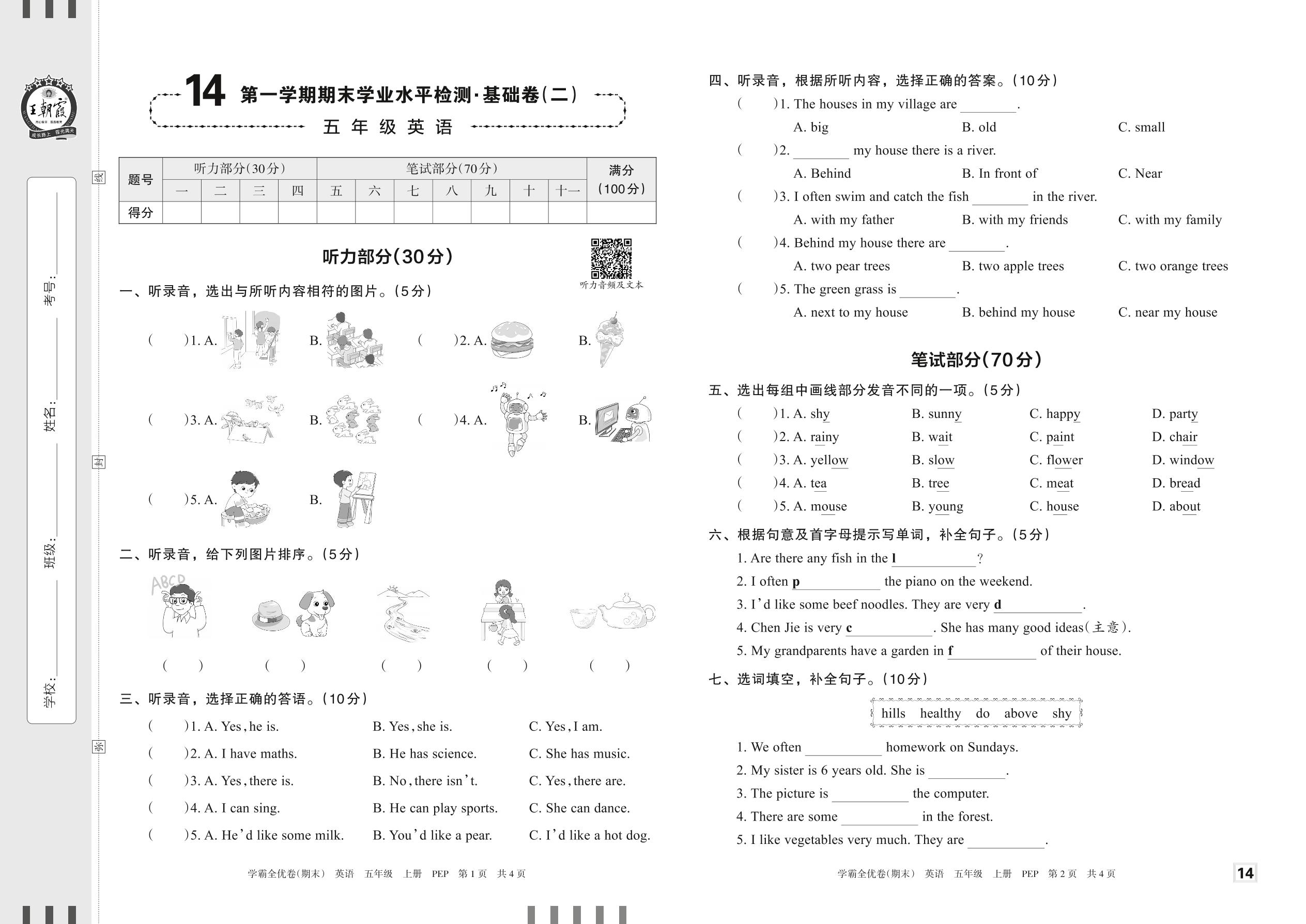 2022上册五年级英语人教PEP版 14 第一学期期末学业水平检测·基础卷(二)