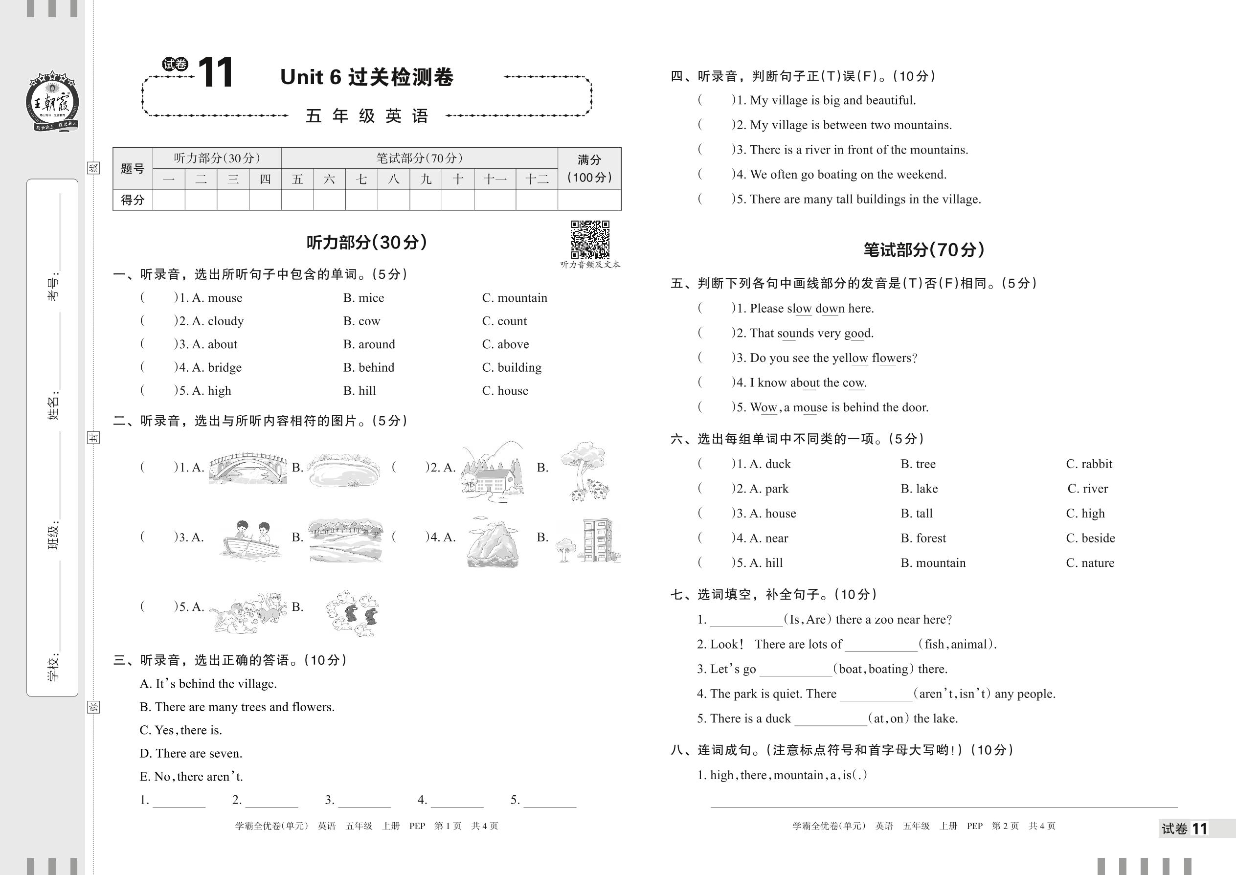 2022上册五年级英语人教PEP版 试卷11 Unit 6 过关检测卷