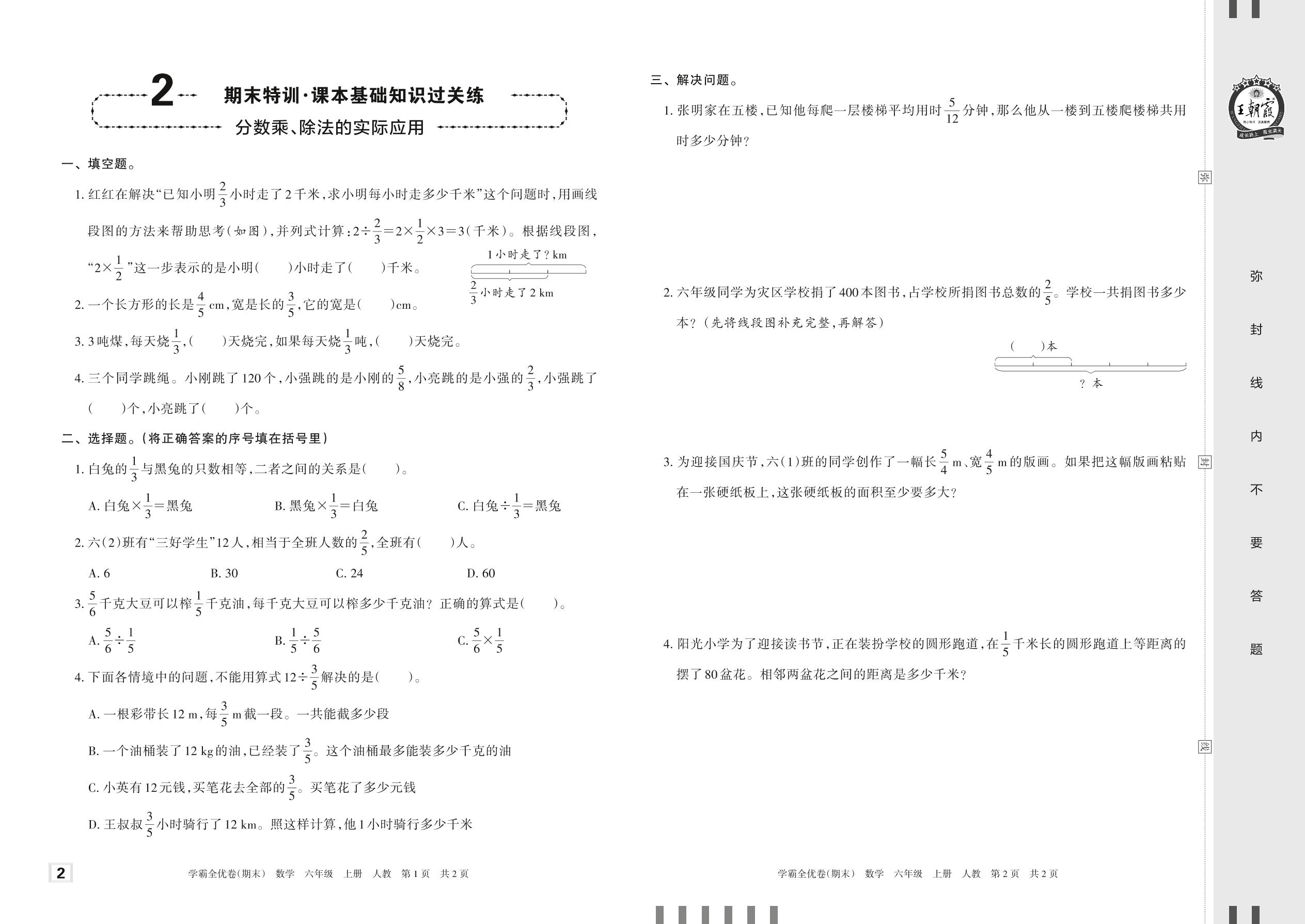 2022上册六年级数学人教版 2 期末特训·课本基础知识过关练——分数乘、除法的实际应用
