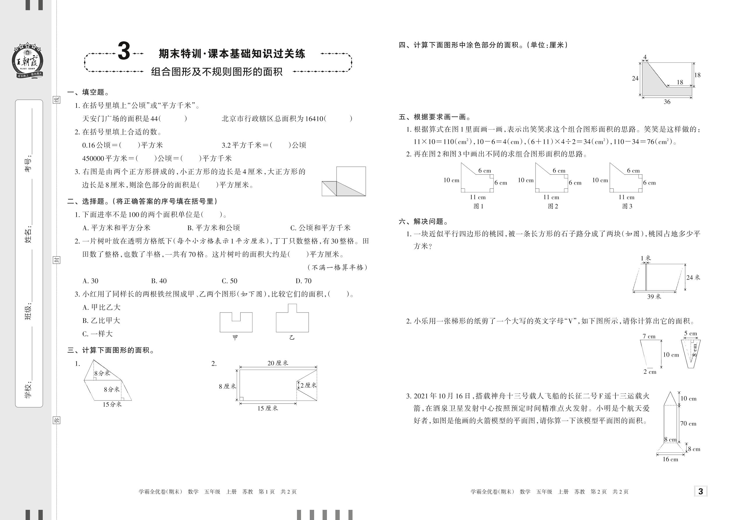 2022上册五年级数学苏教版 3 期末特训·课本基础知识过关练——组合图形及不规则图形的面积