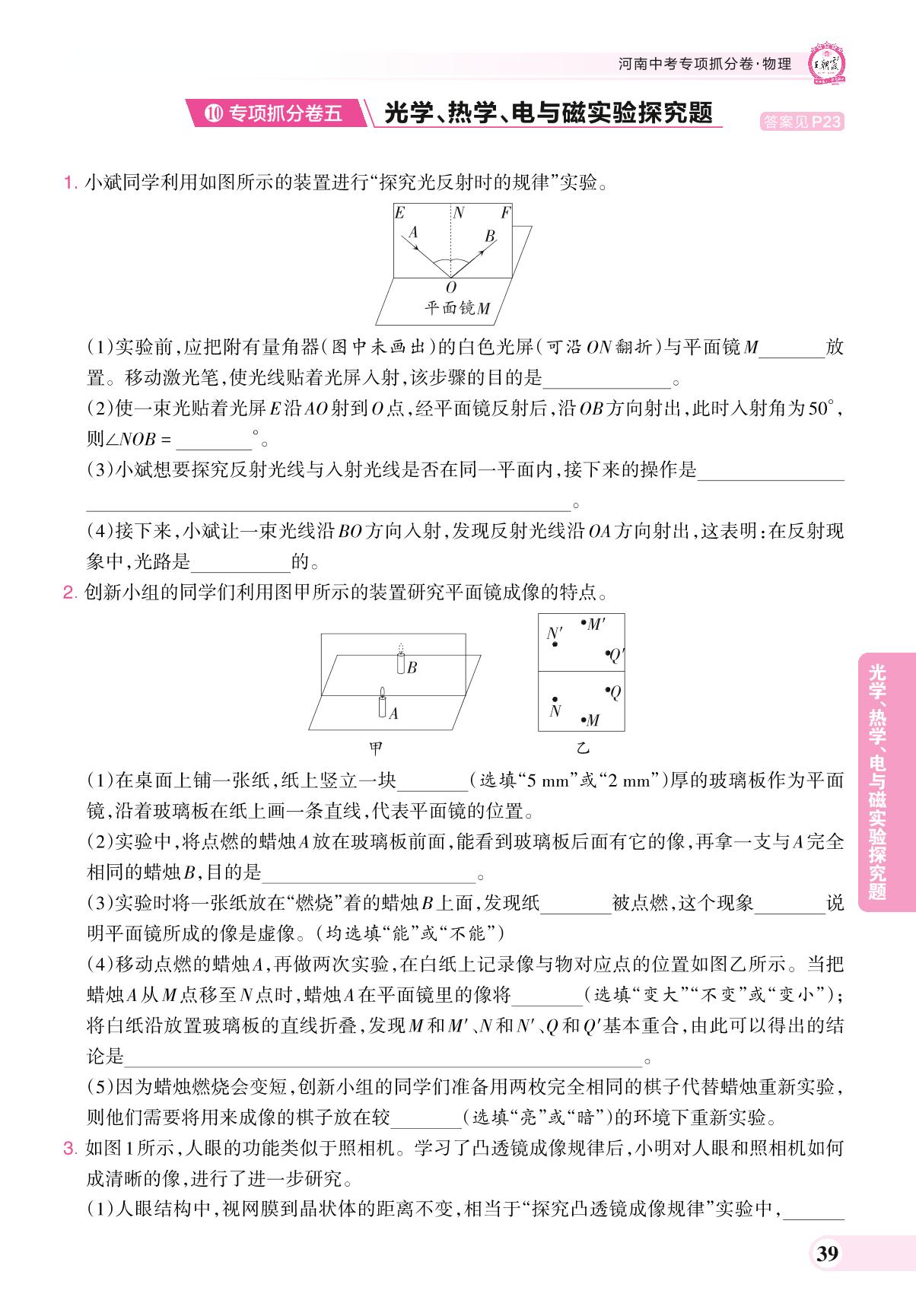 河南中考专项抓分卷五 光学、热学、电与磁实验探究题·物理【10】