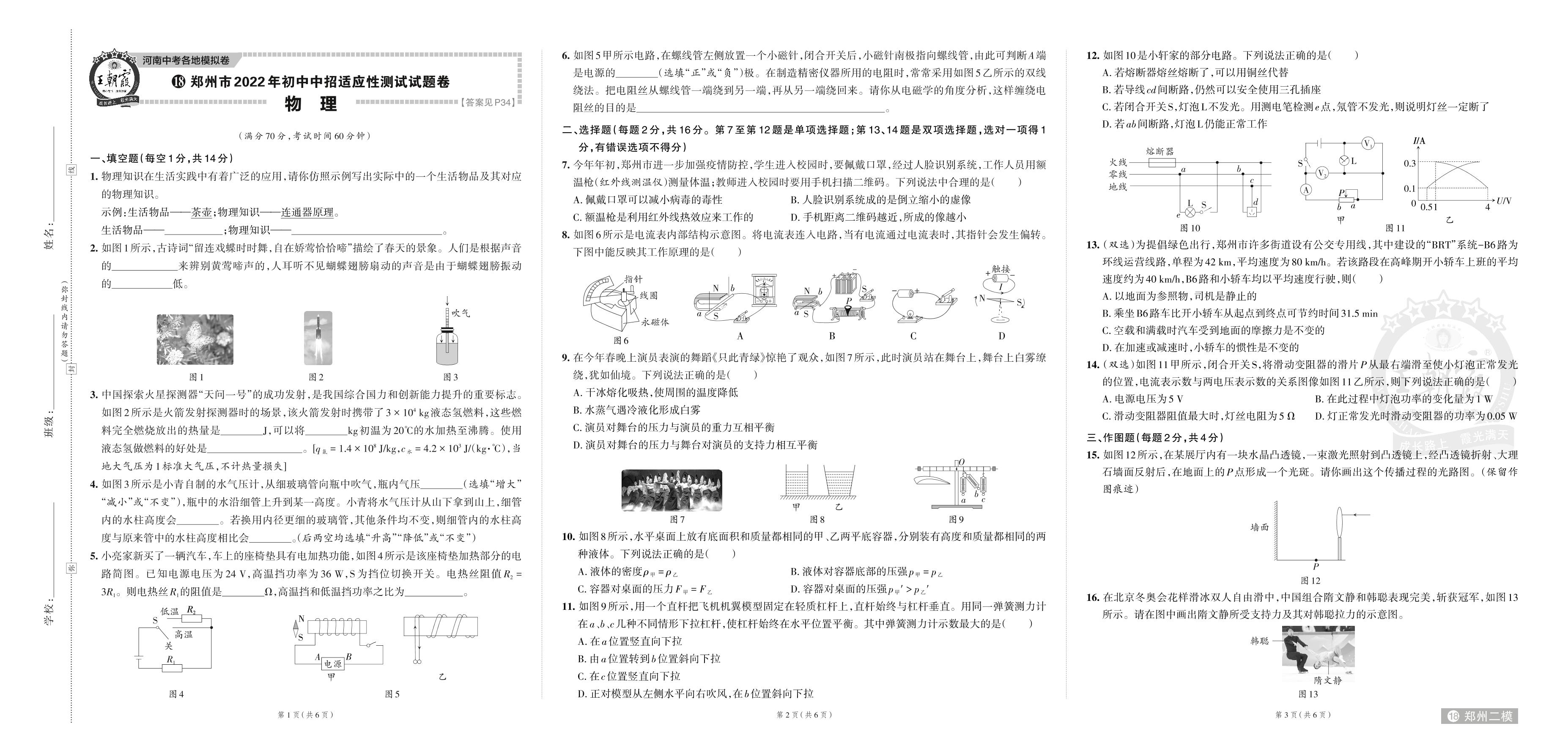 郑州市2022年初中中招适应性测试试题卷·物理【18】