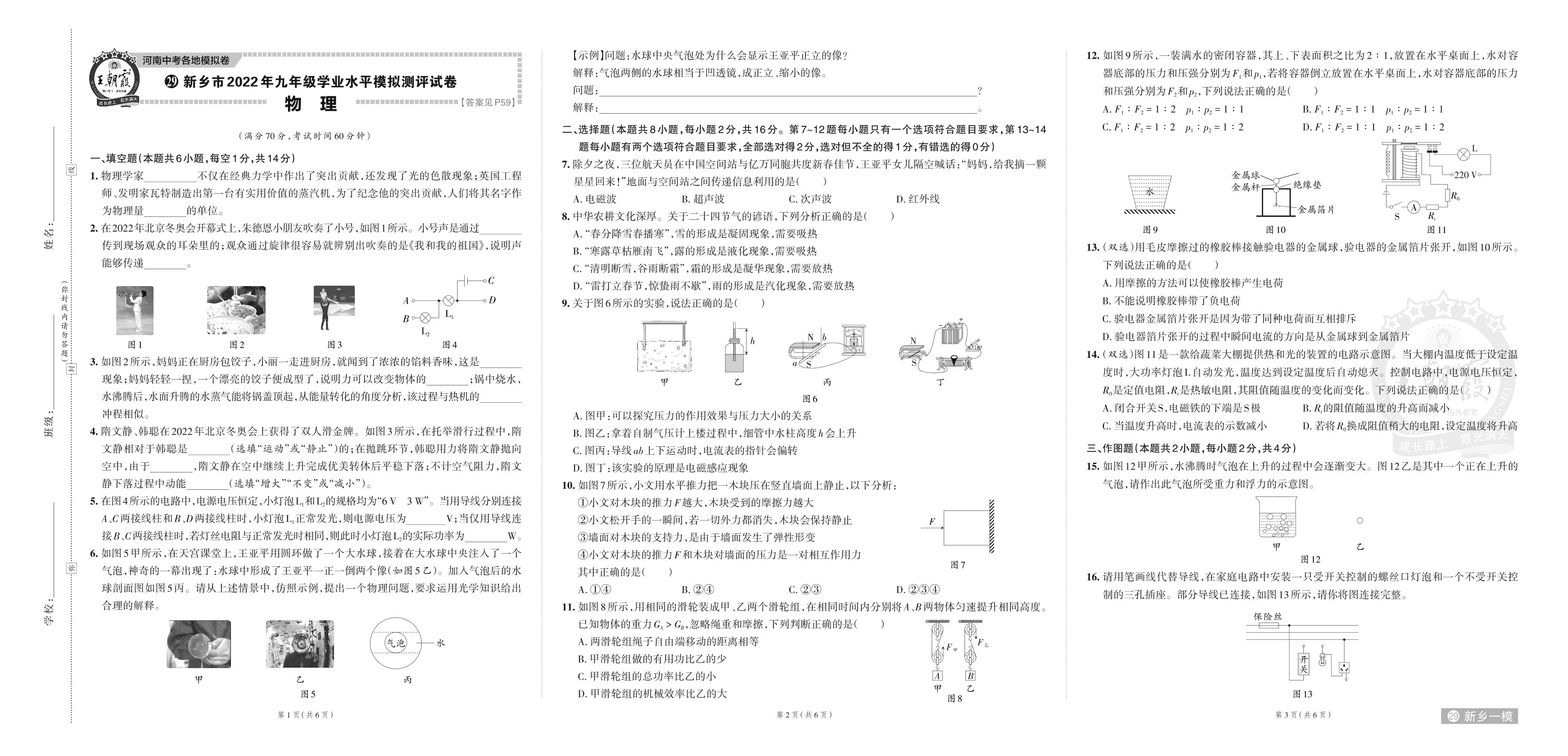 新乡市2022年九年级学业水平模拟测评试卷·物理【29】