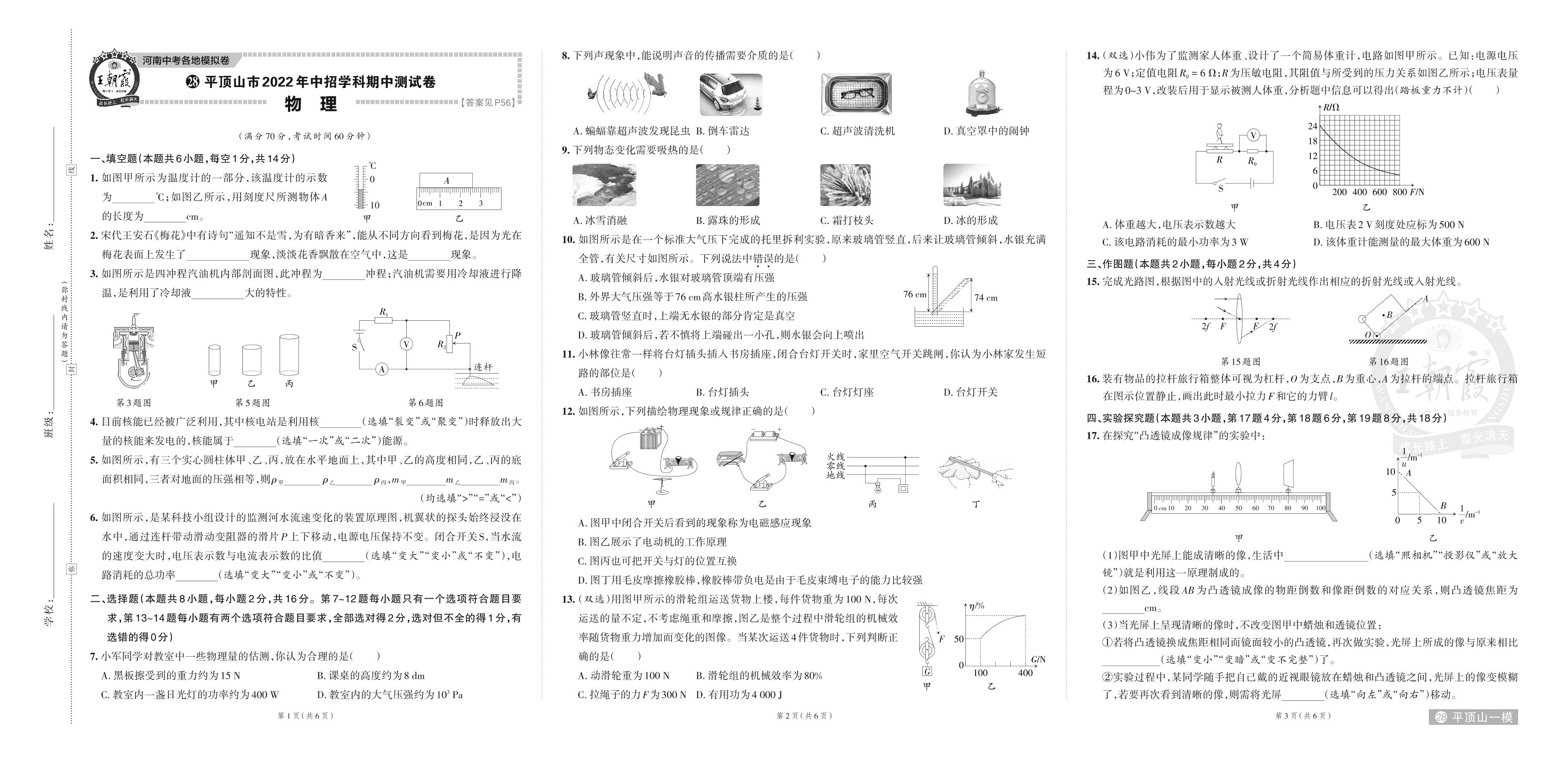 平顶山市2022年中招学科期中测试卷·物理【28】