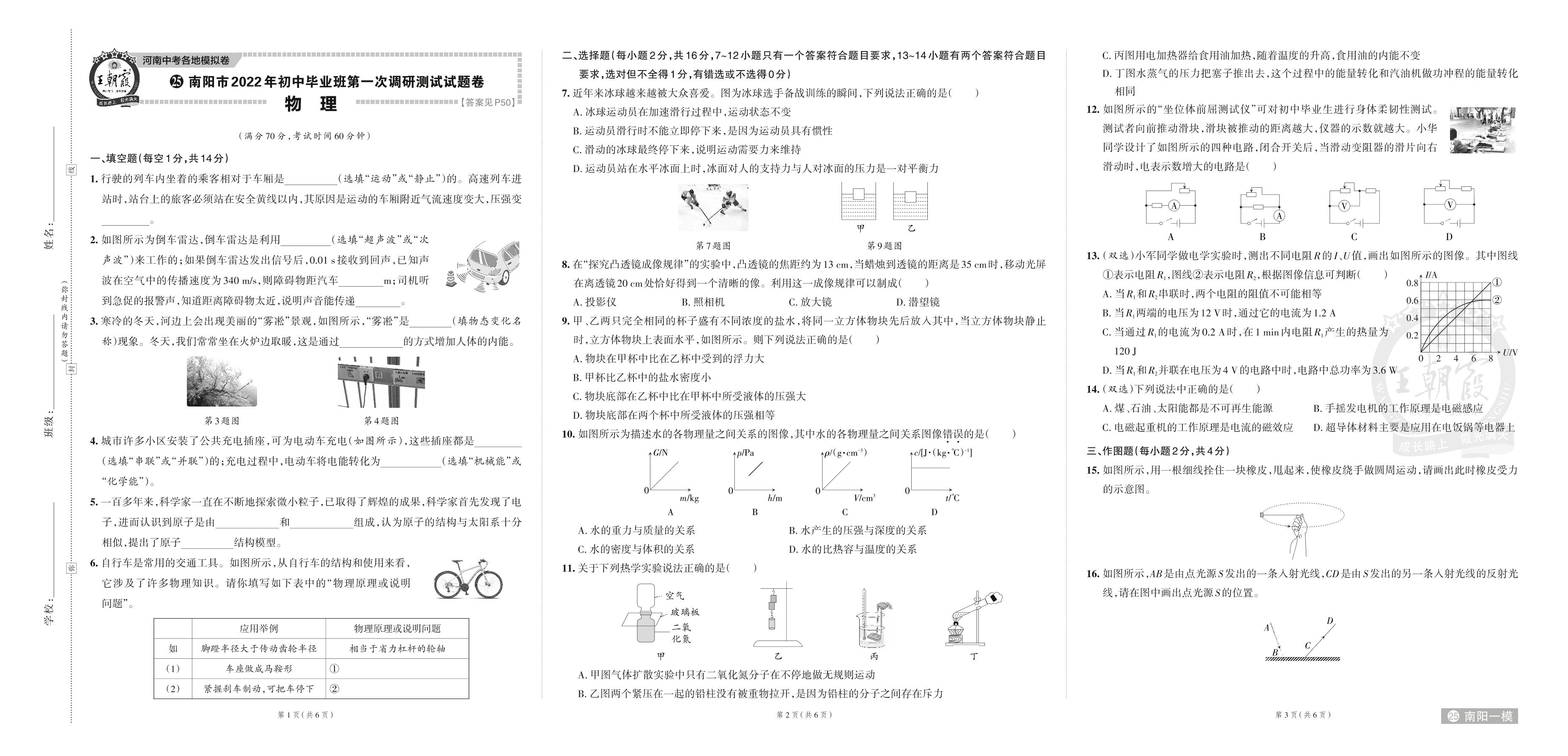 南阳市2022年初中毕业班第一次调研测试试题卷·物理【25】