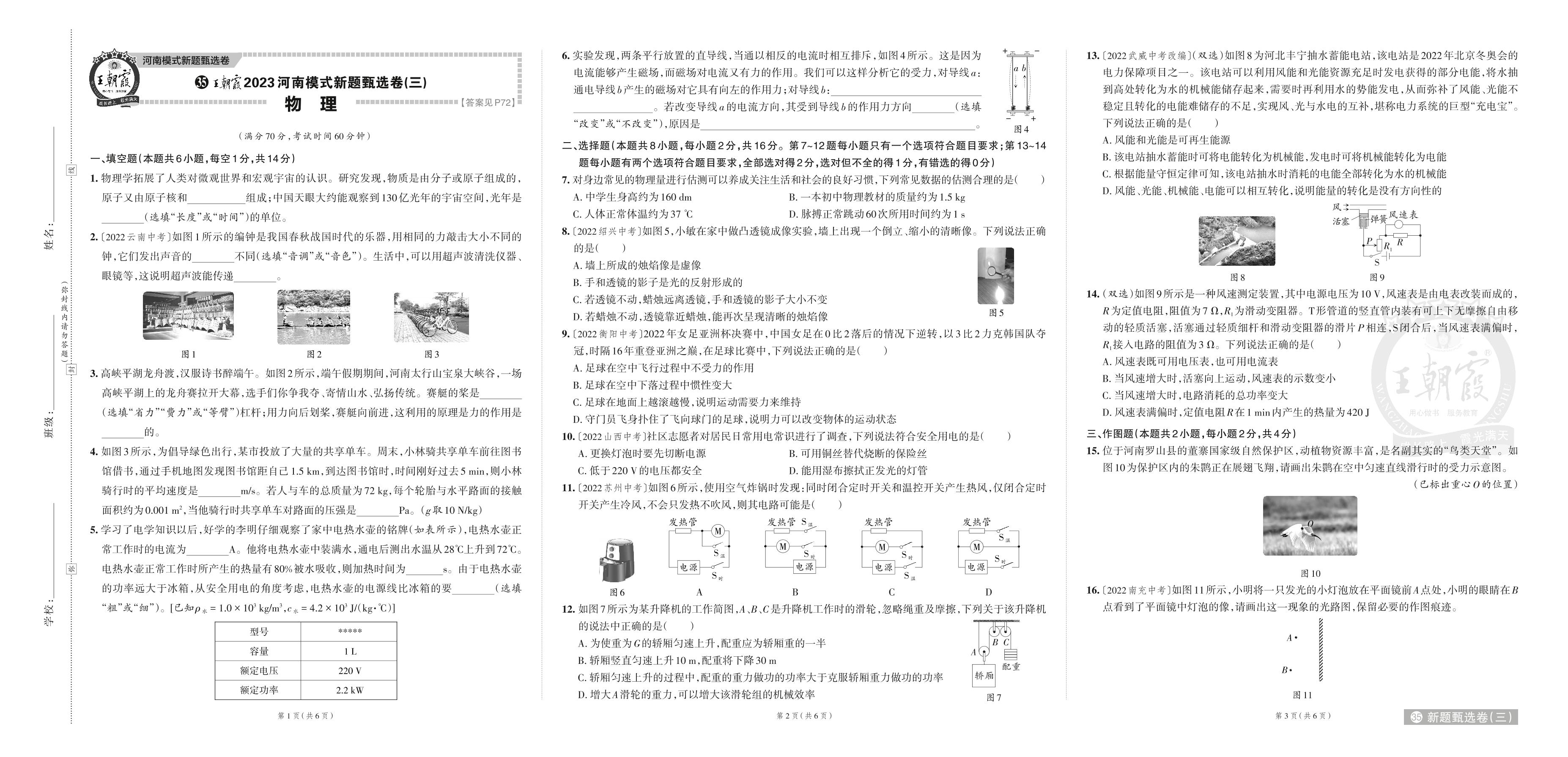 王朝霞2023河南模式新题甄选卷(三)·中考物理【35】