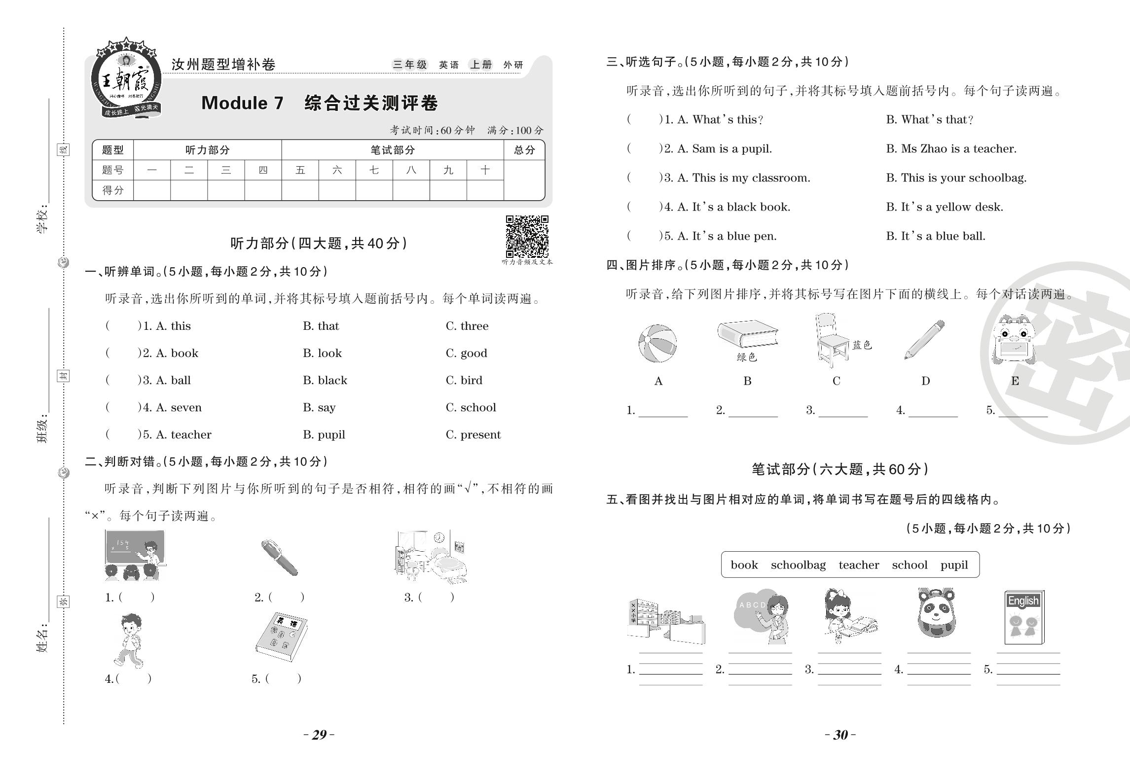 2022上册三年级英语外研版 Module 7 综合过关测评卷