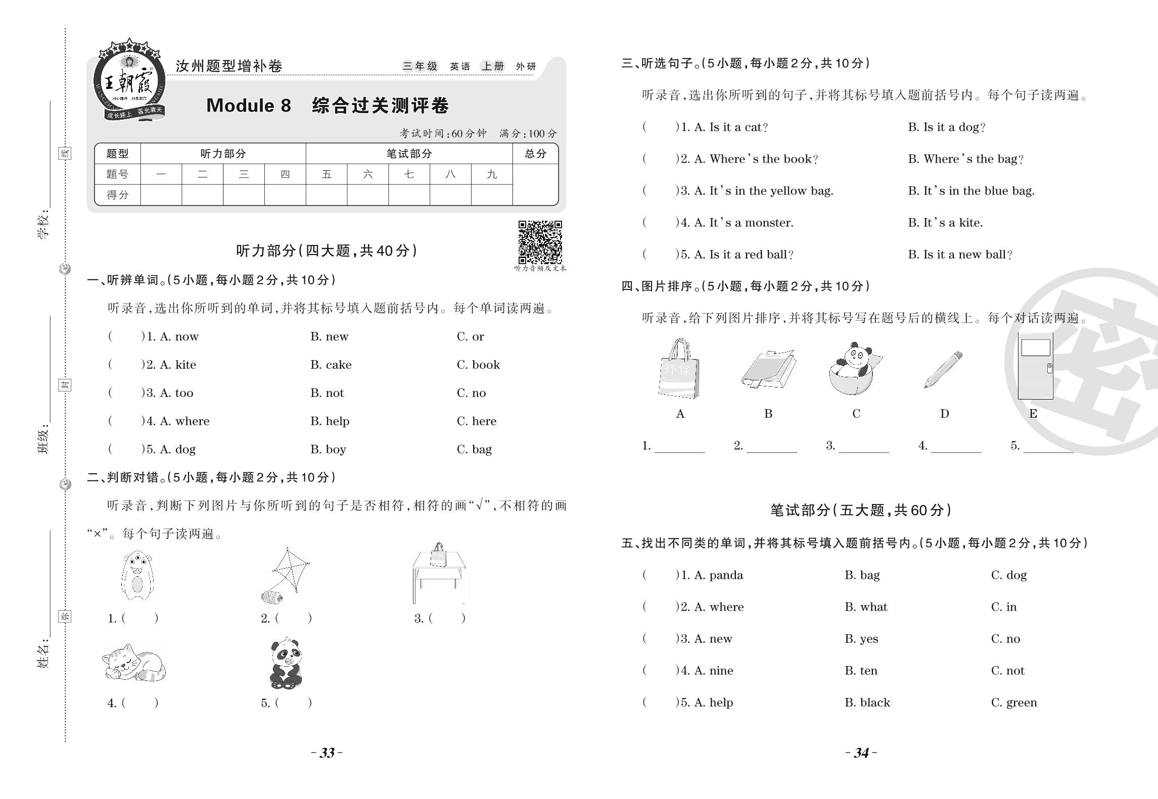 2022上册三年级英语外研版 Module 8 综合过关测评卷