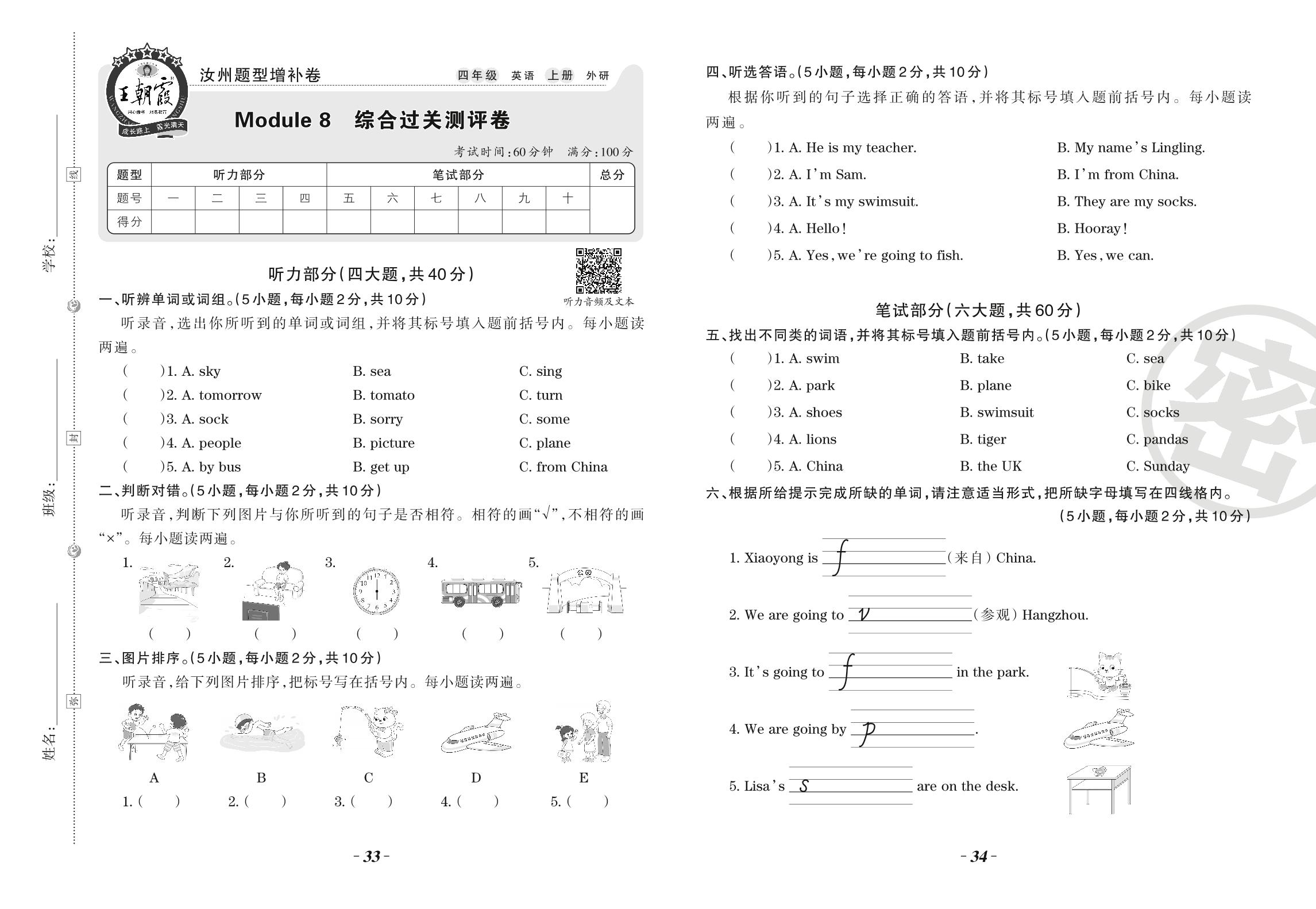 2022上册四年级英语外研版 Module 8 综合过关测评卷