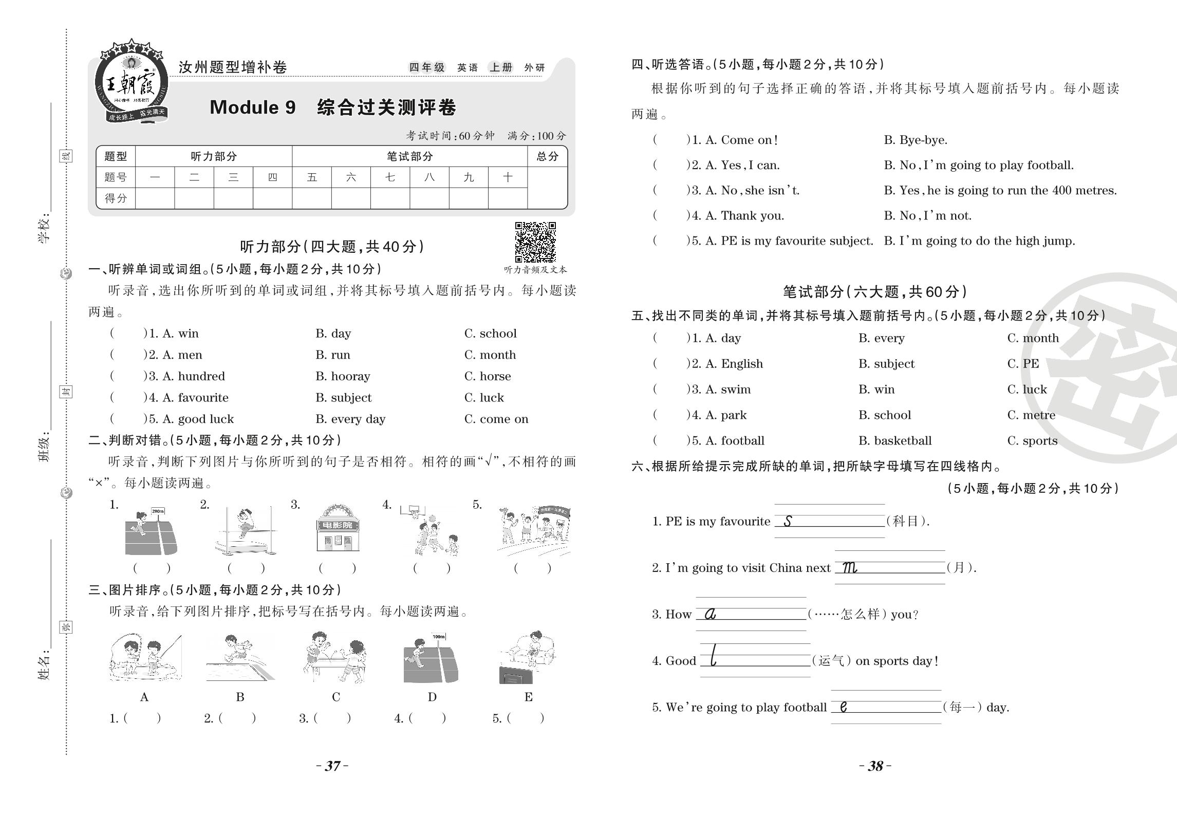2022上册四年级英语外研版 Module 9 综合过关测评卷