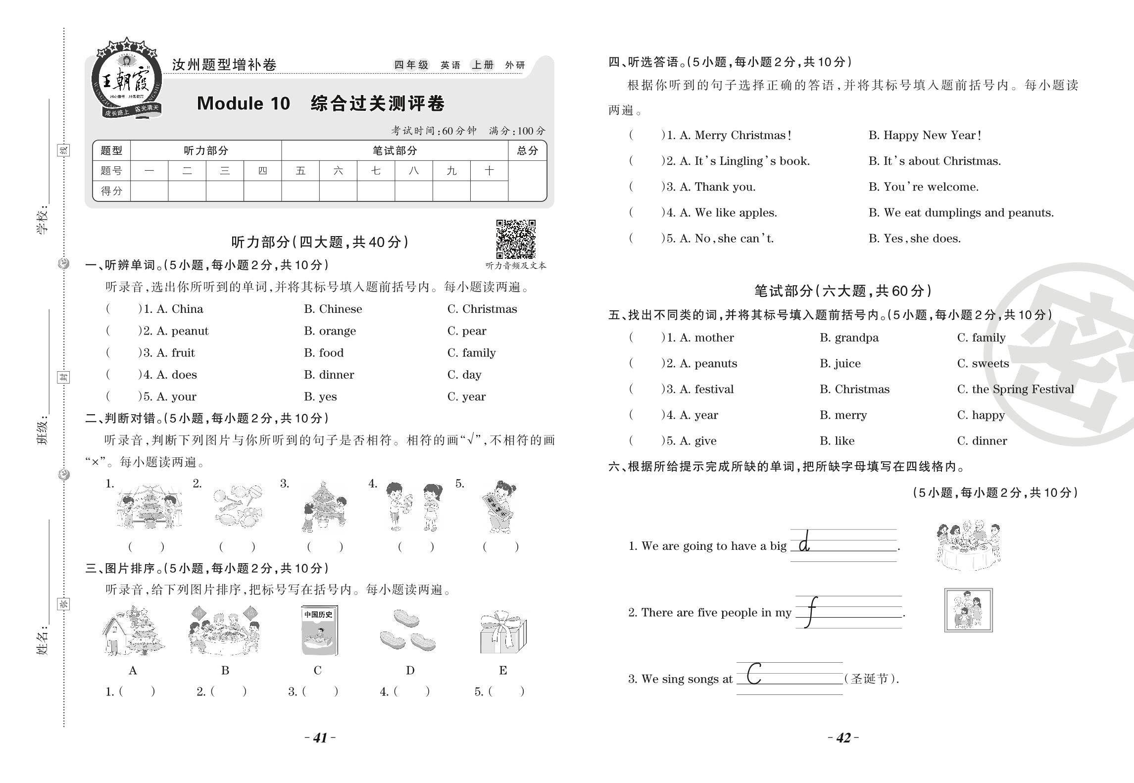 四年级英语外研版(三起始)上册单元卷