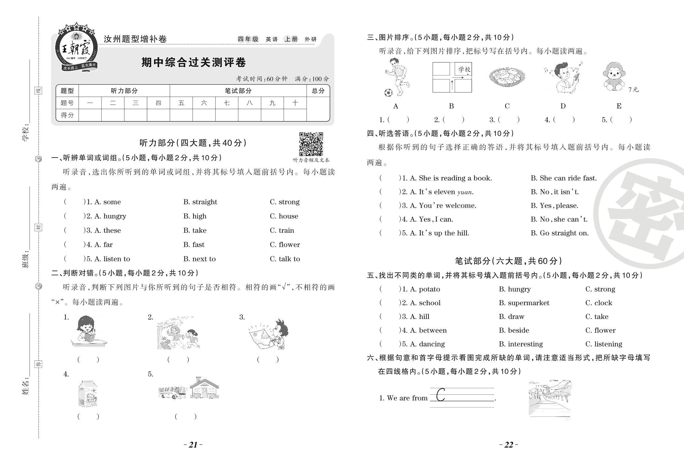 四年级英语外研版(三起始)上册期中卷