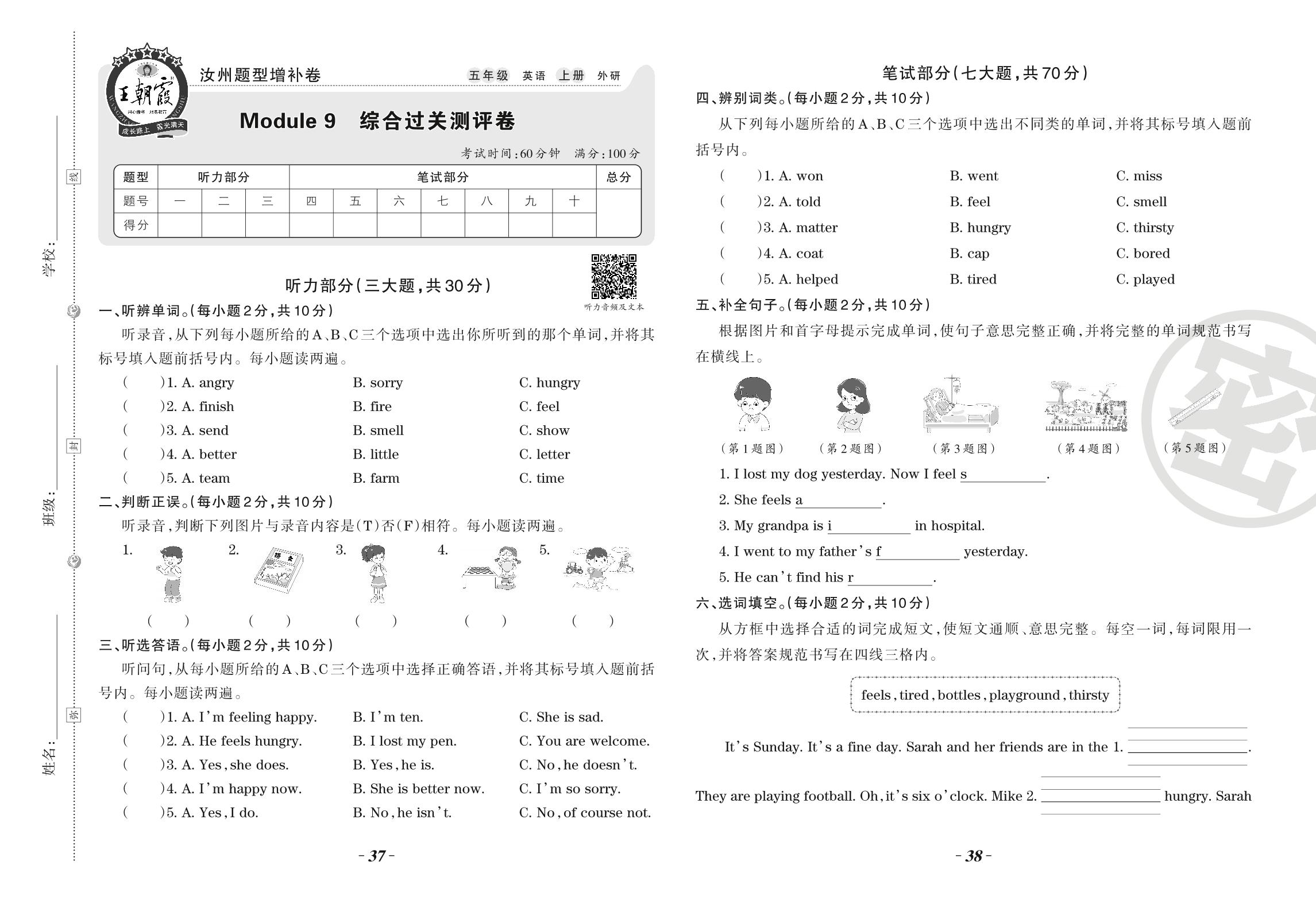 五年级英语外研版(三起始)上册单元卷
