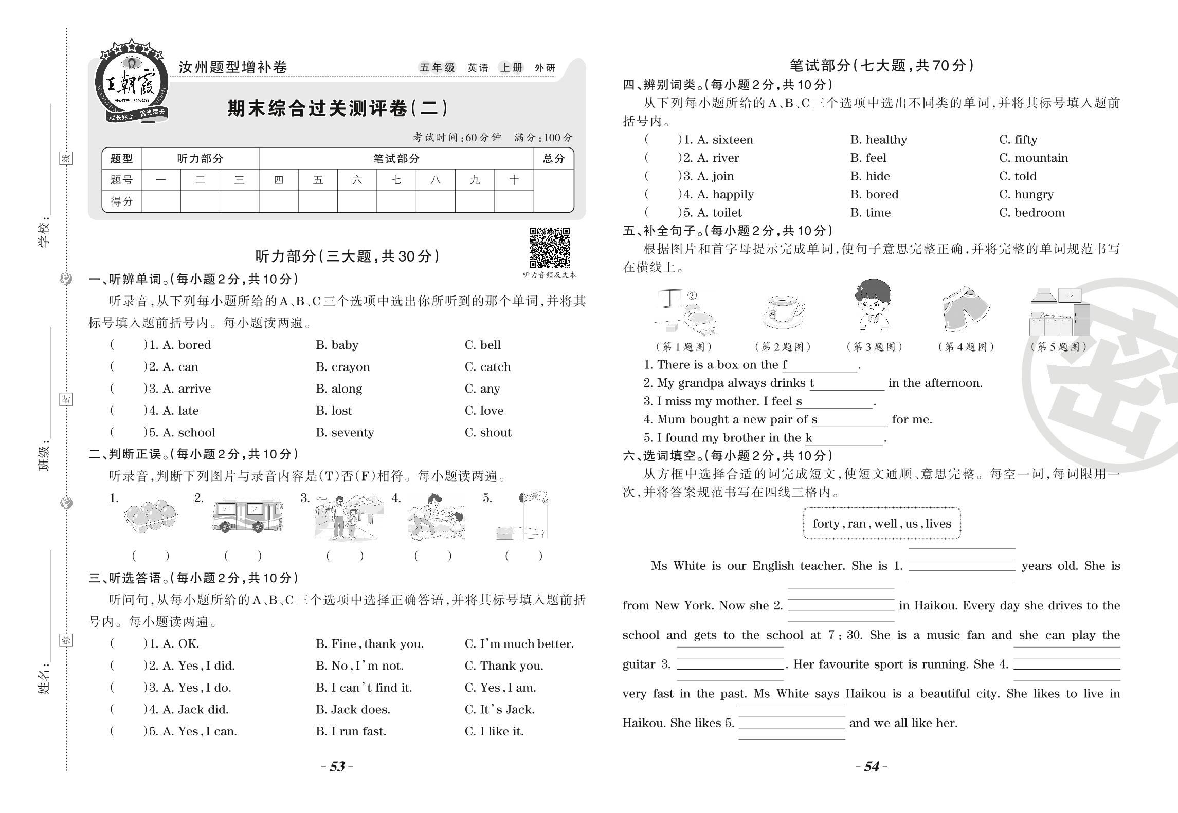 2022上册五年级英语外研版 期末综合过关测评卷(二)