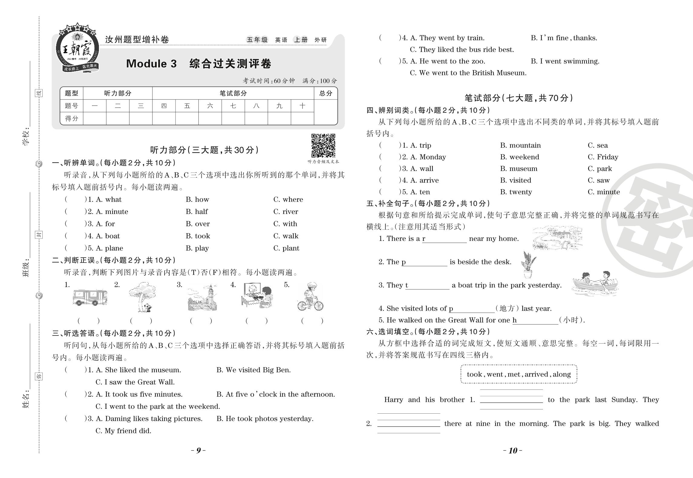 五年级英语外研版(三起始)上册单元卷