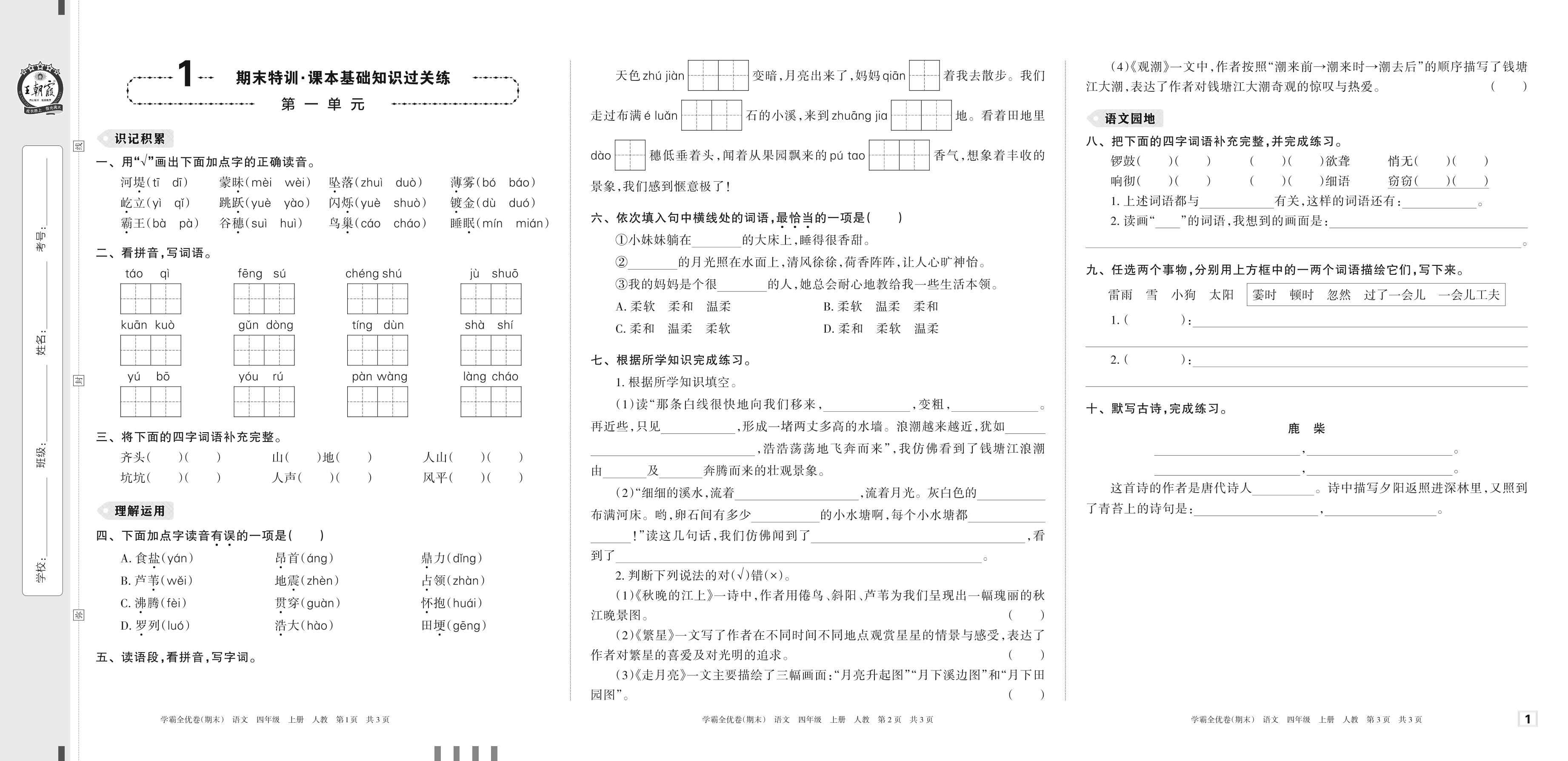 四年级语文人教版上册单元卷