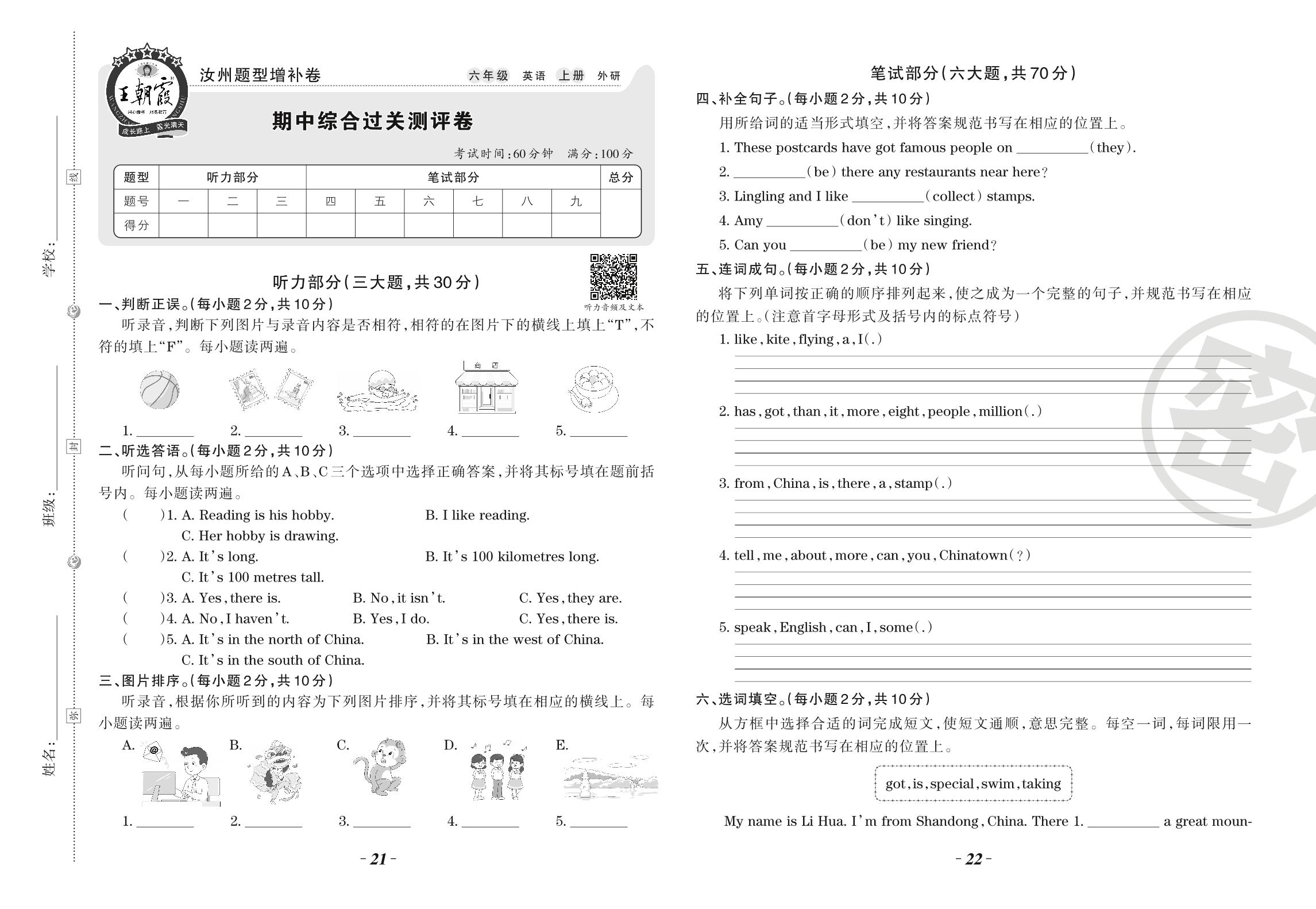 六年级英语外研版(三起始)上册期中卷