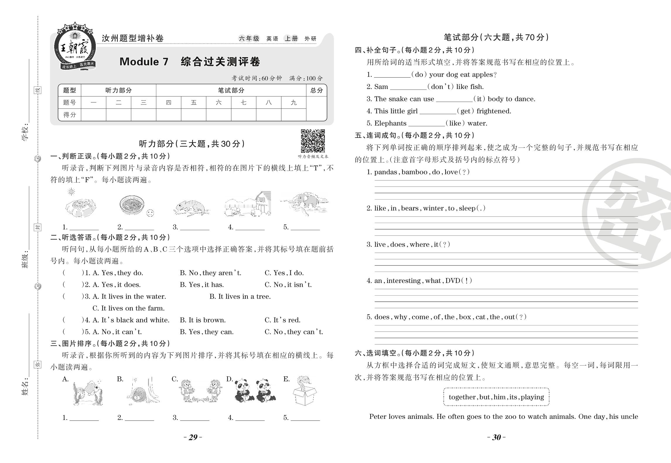 2022上册六年级英语外研版 Module 7 综合过关测评卷
