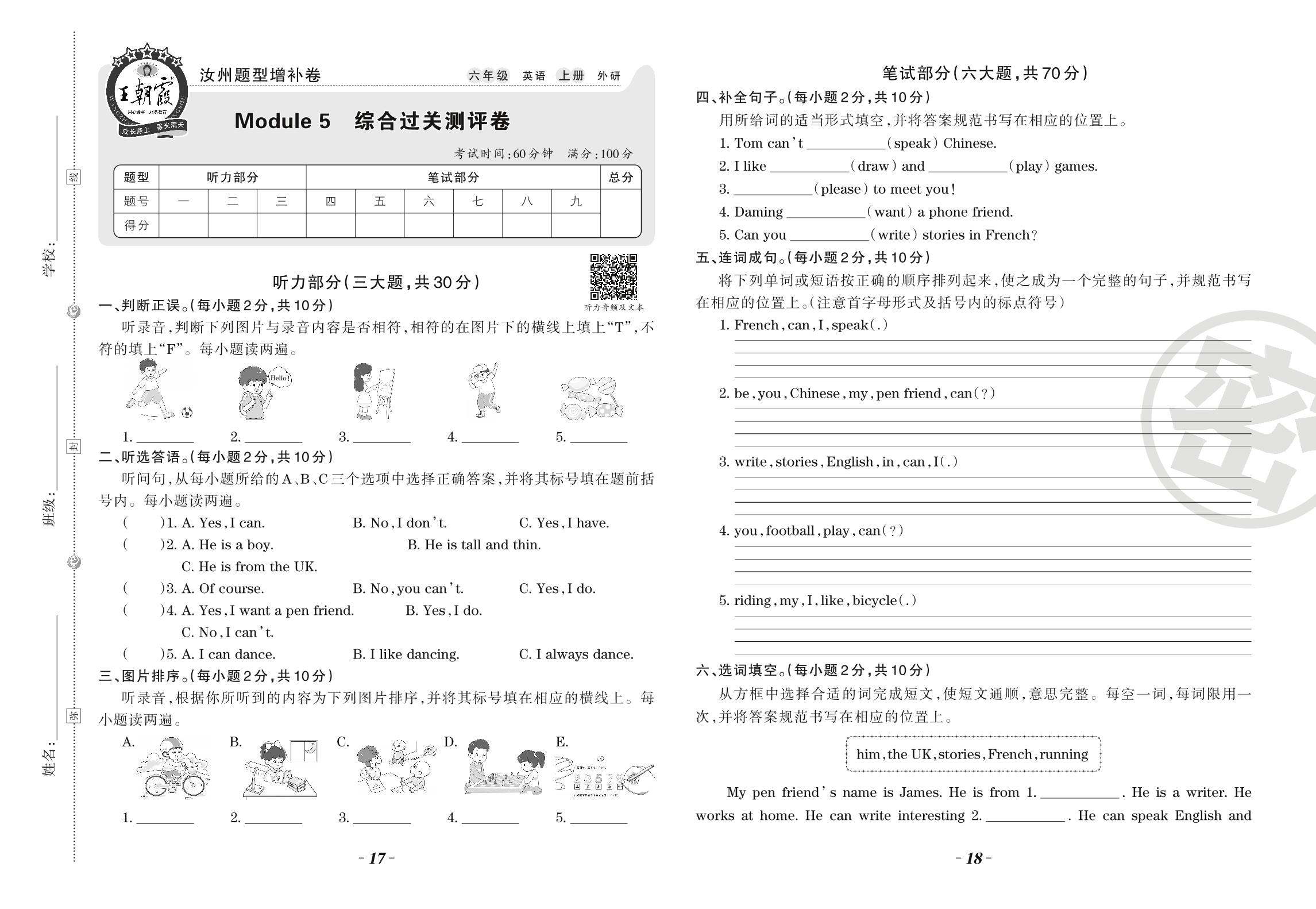 2022上册六年级英语外研版 Module 5 综合过关测评卷