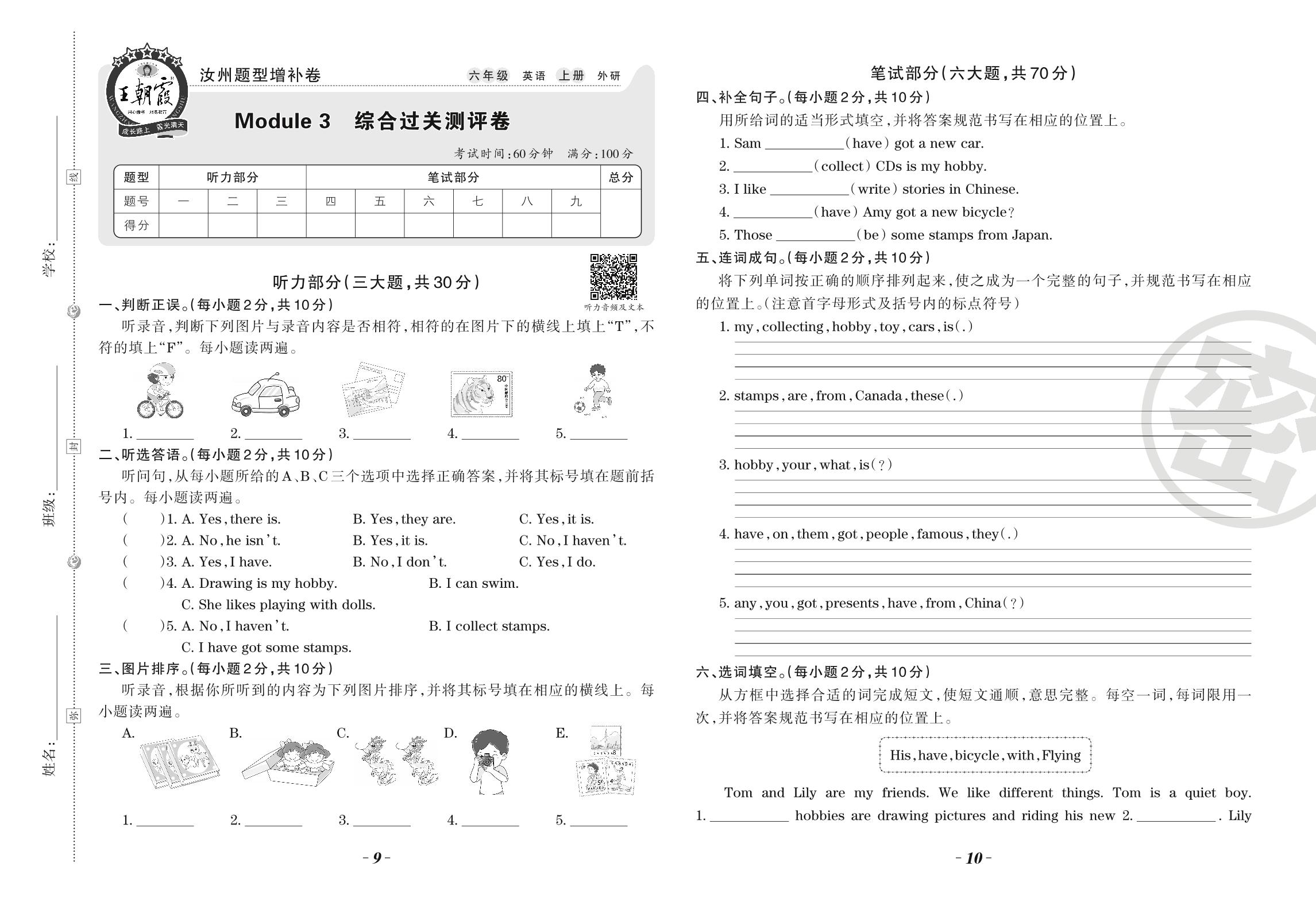 2022上册六年级英语外研版 Module 3 综合过关测评卷