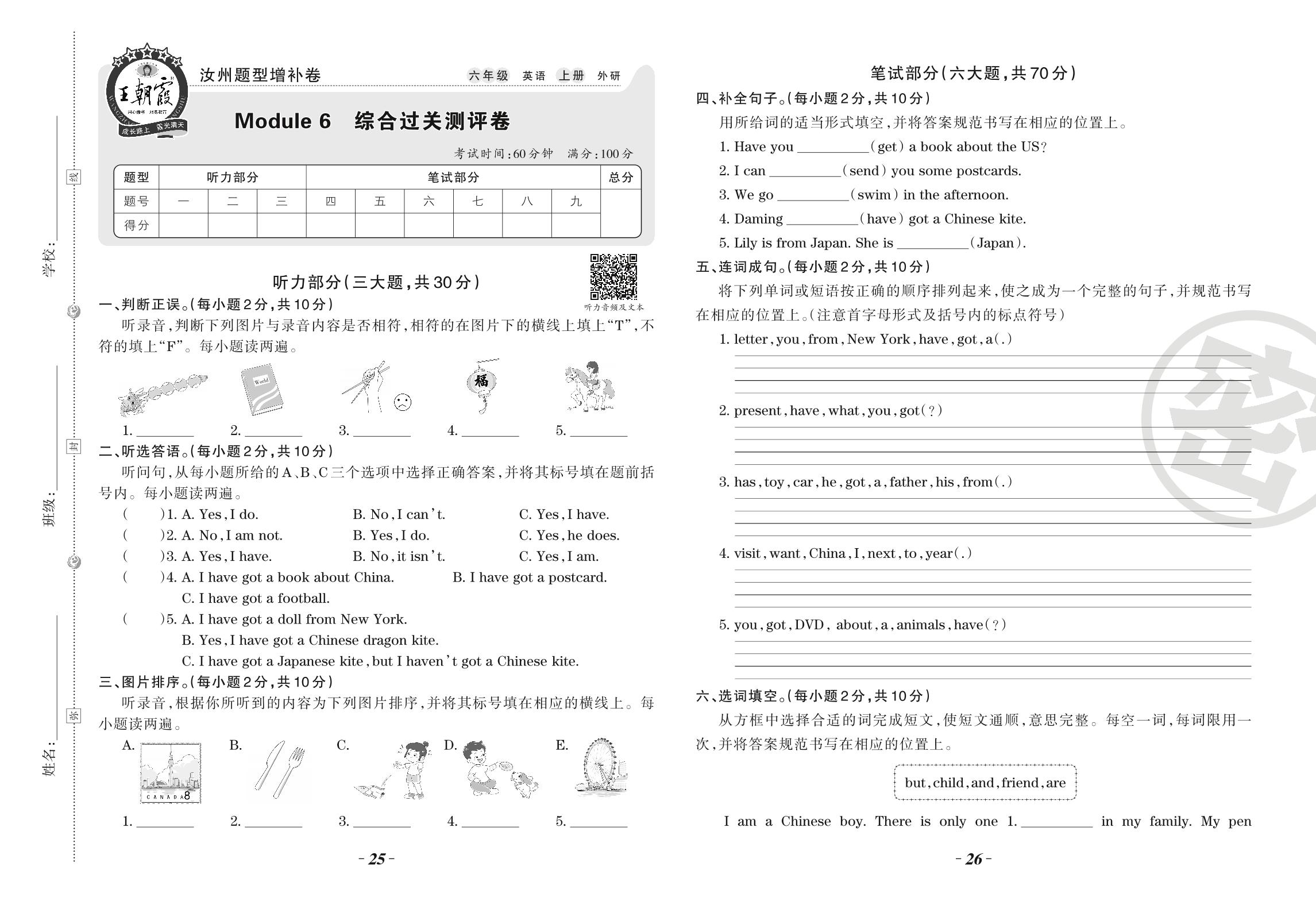 六年级英语外研版(三起始)上册单元卷