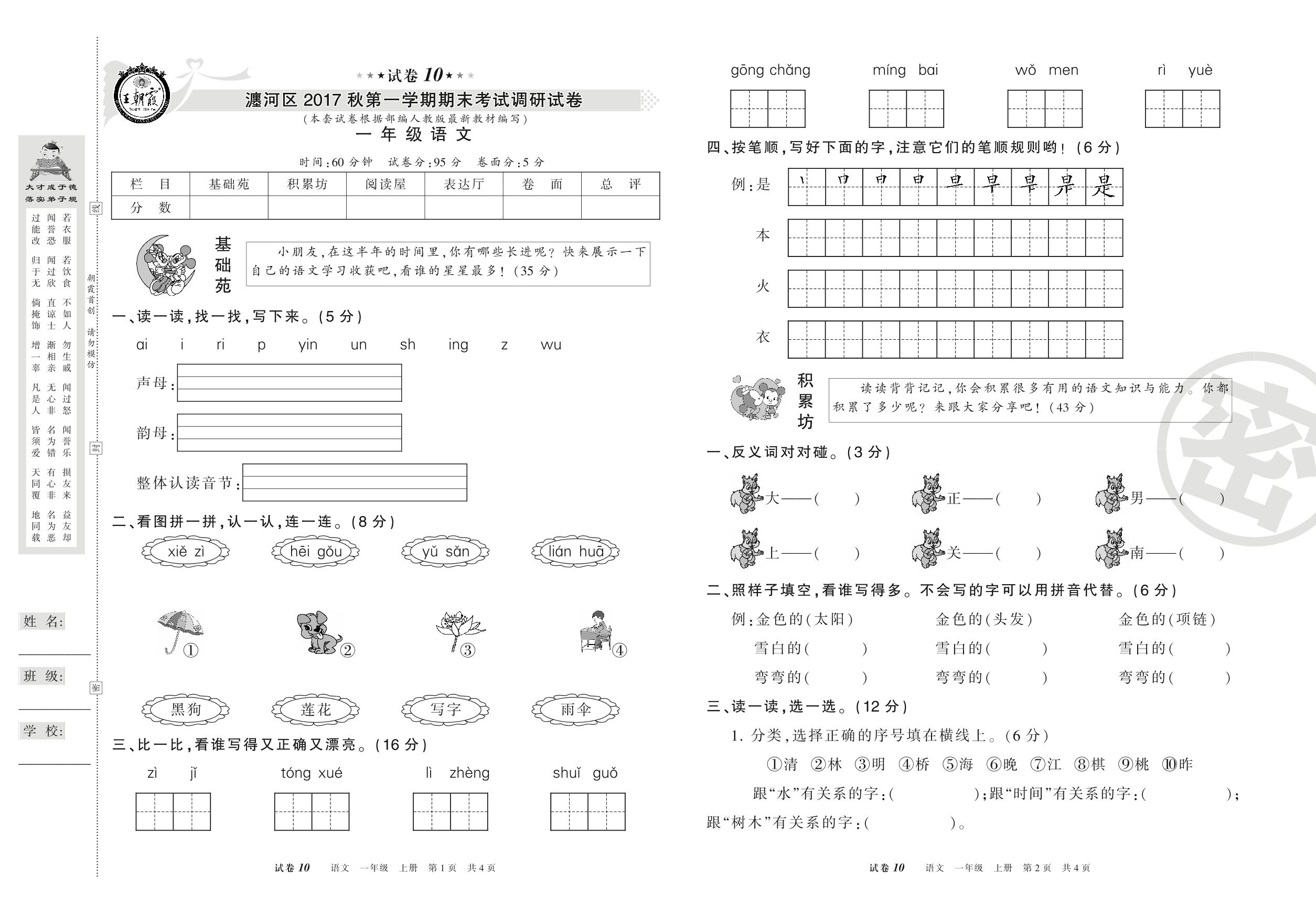 2016-2017学年第一学期洛阳市瀍河区一年级语文试卷(人教版)【10】