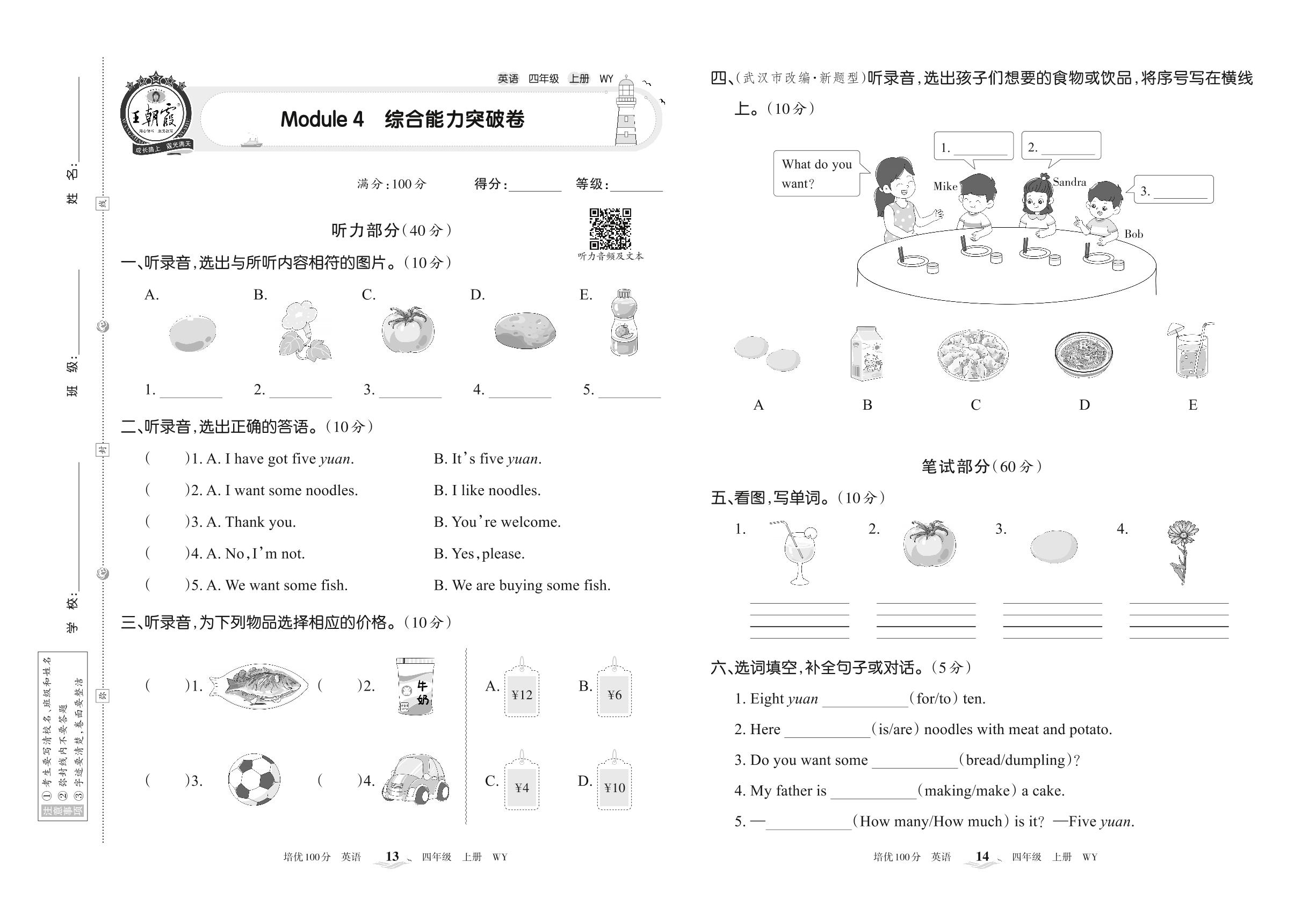 2022上册四年级英语外研版 Module 4 综合能力突破卷