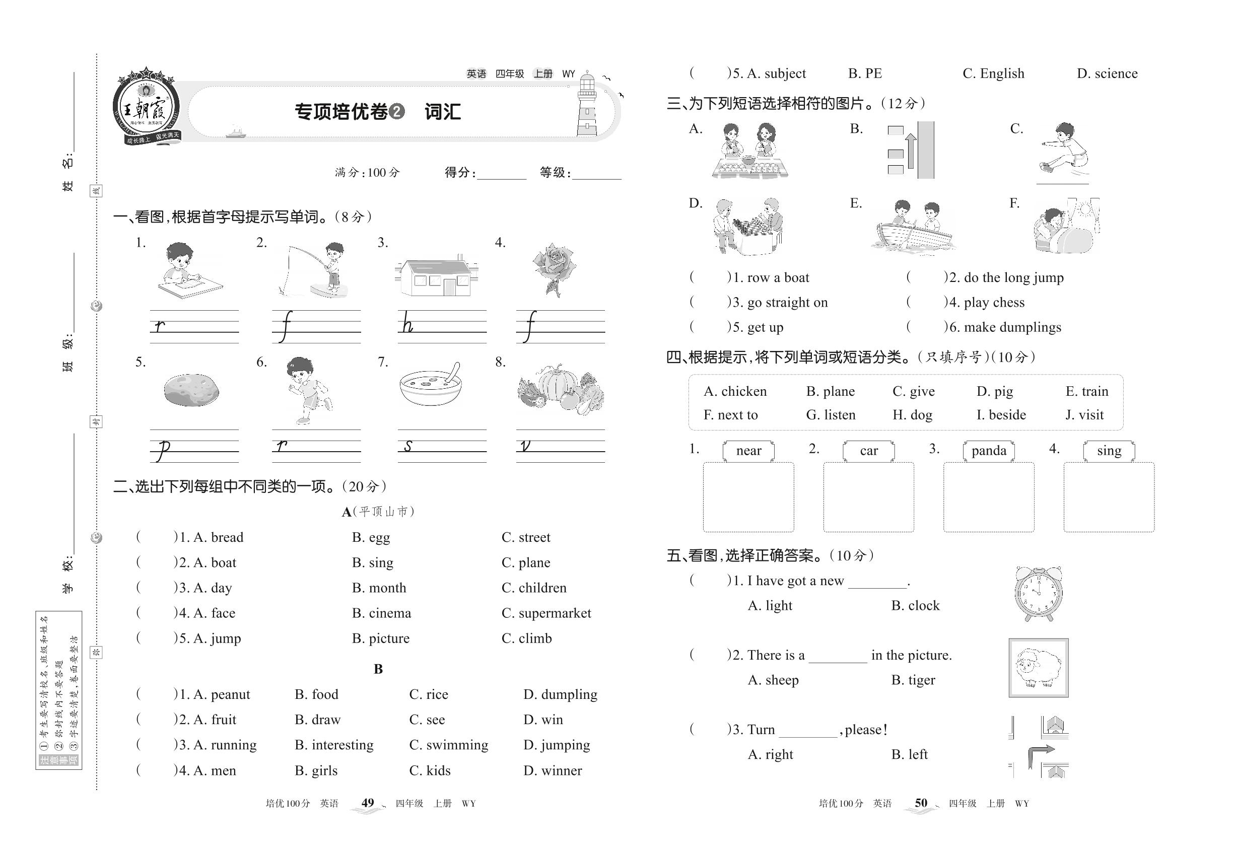 2022上册四年级英语外研版 专项培优卷2 词汇