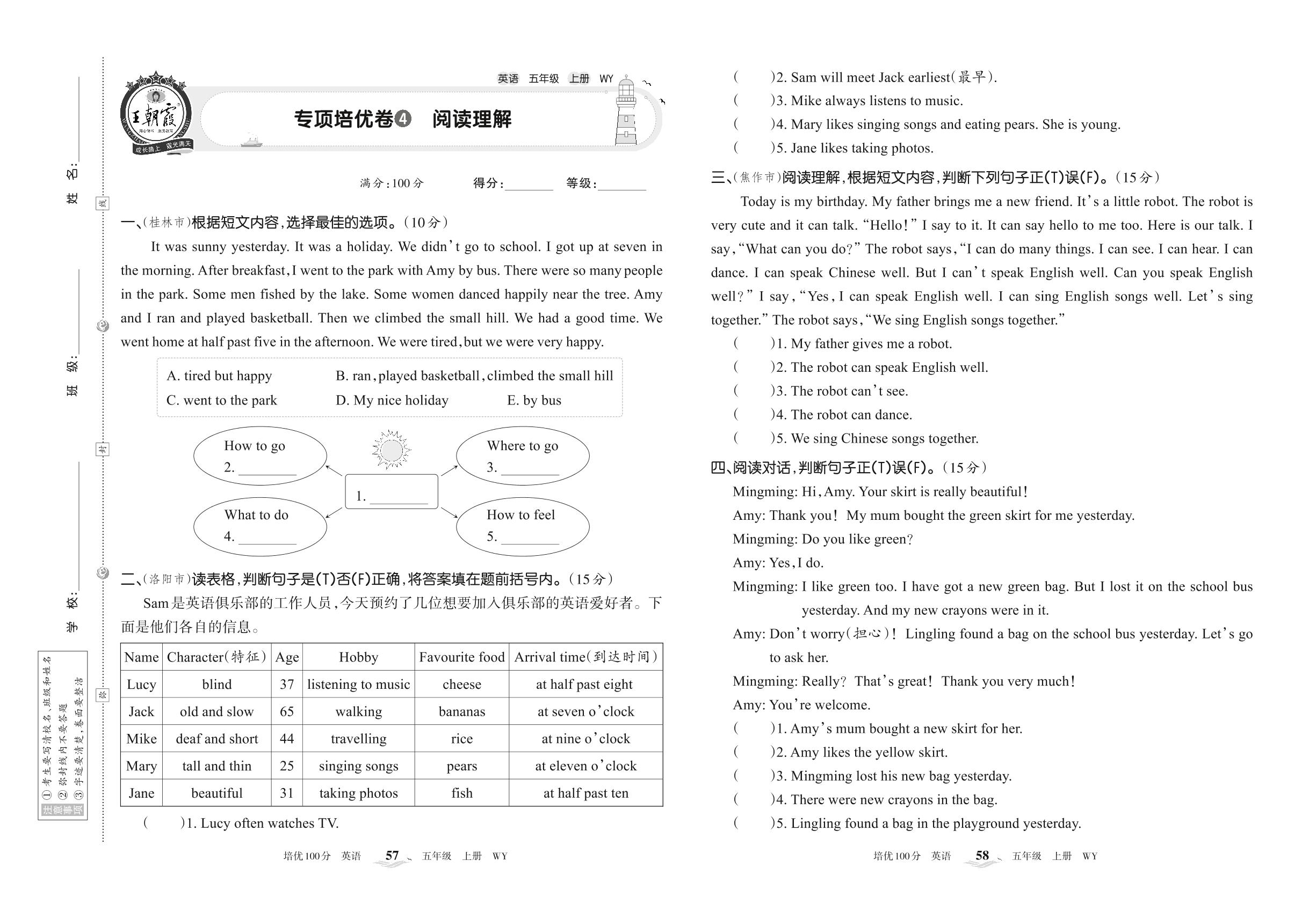 2022上册五年级英语外研版 专项培优卷4 阅读理解