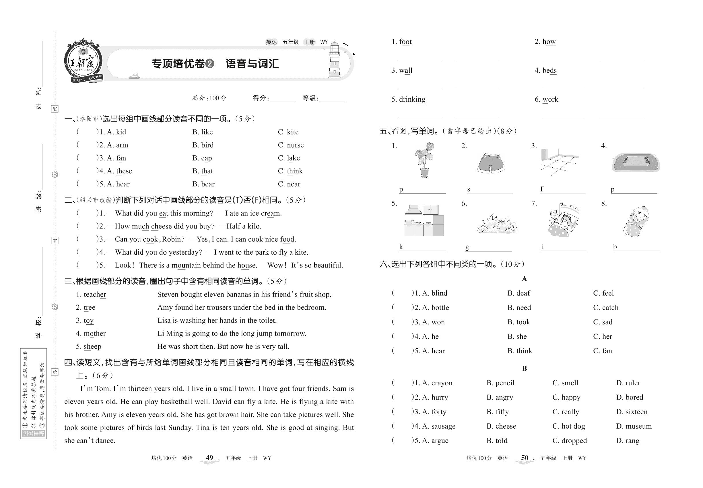2022上册五年级英语外研版 专项培优卷2 语音与词汇