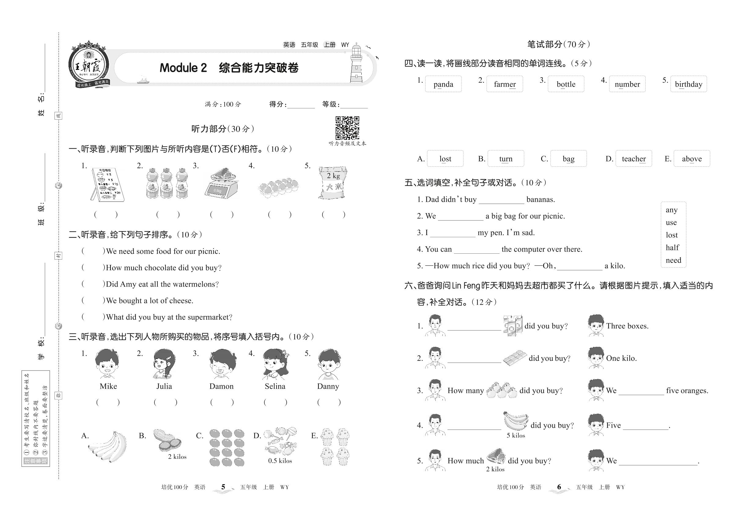 2022上册五年级英语外研版 Module 2 综合能力突破卷