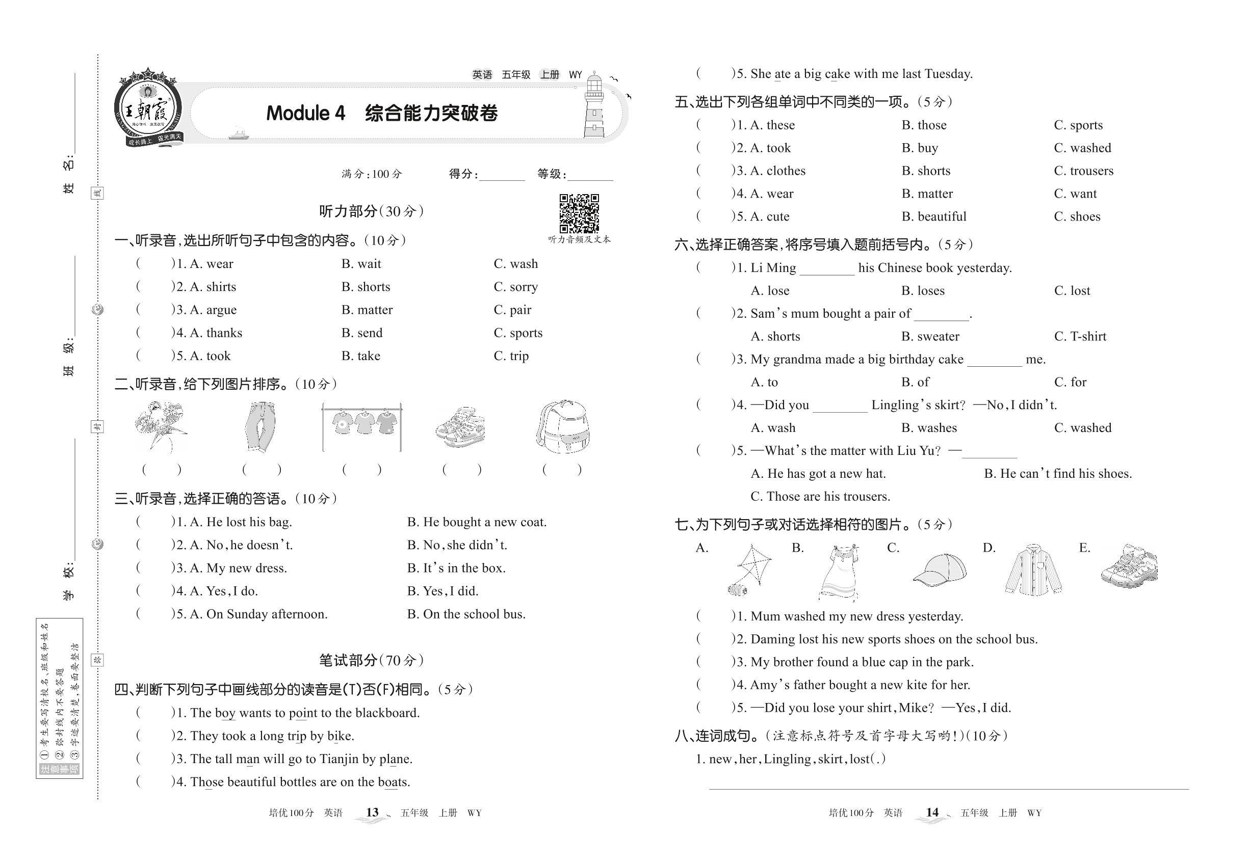 2022上册五年级英语外研版 Module 4 综合能力突破卷