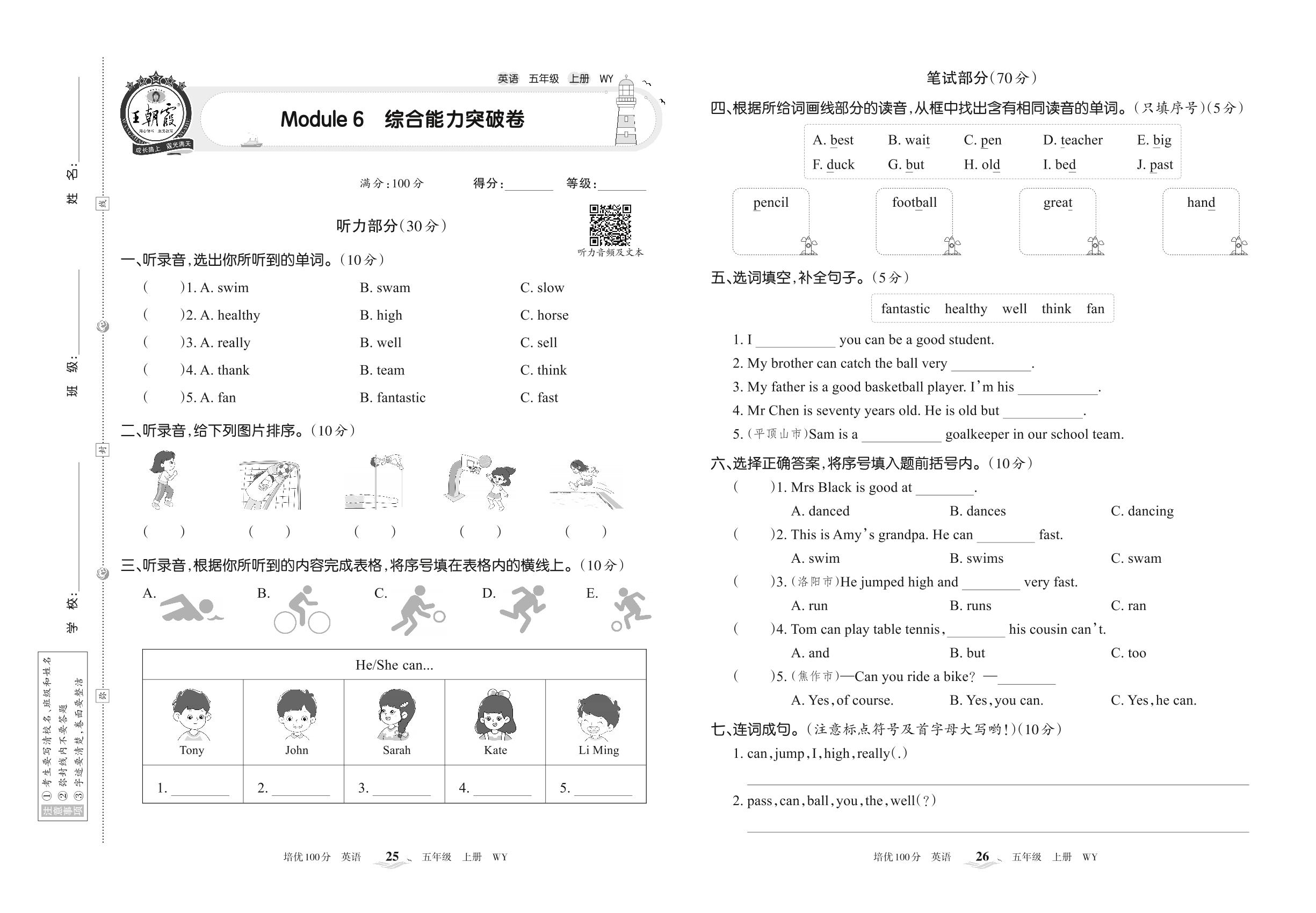 2022上册五年级英语外研版 Module 6 综合能力突破卷