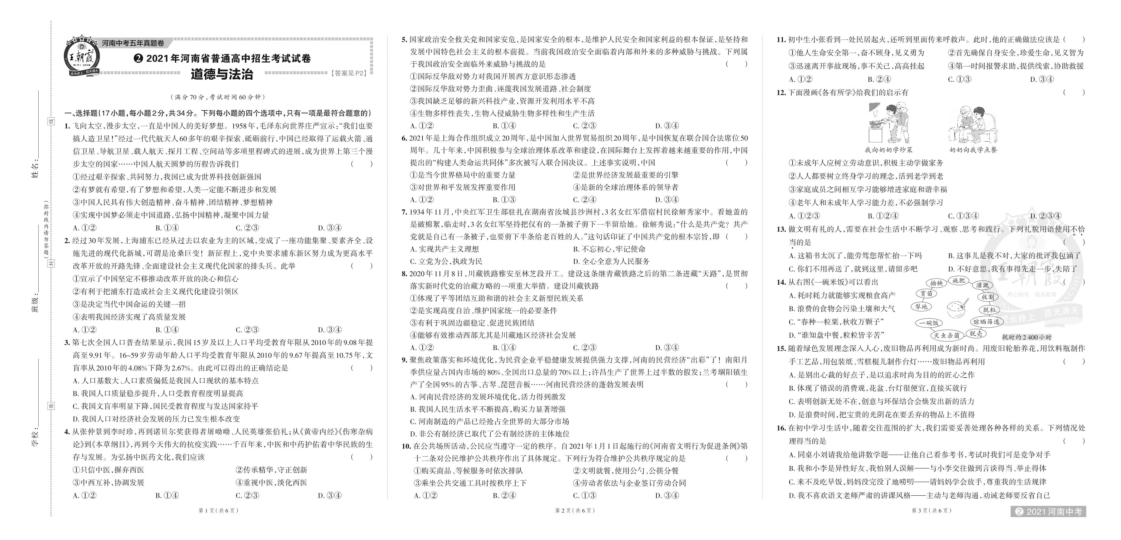 2021年河南省普通高中招生考试试卷.道德与法治【2】