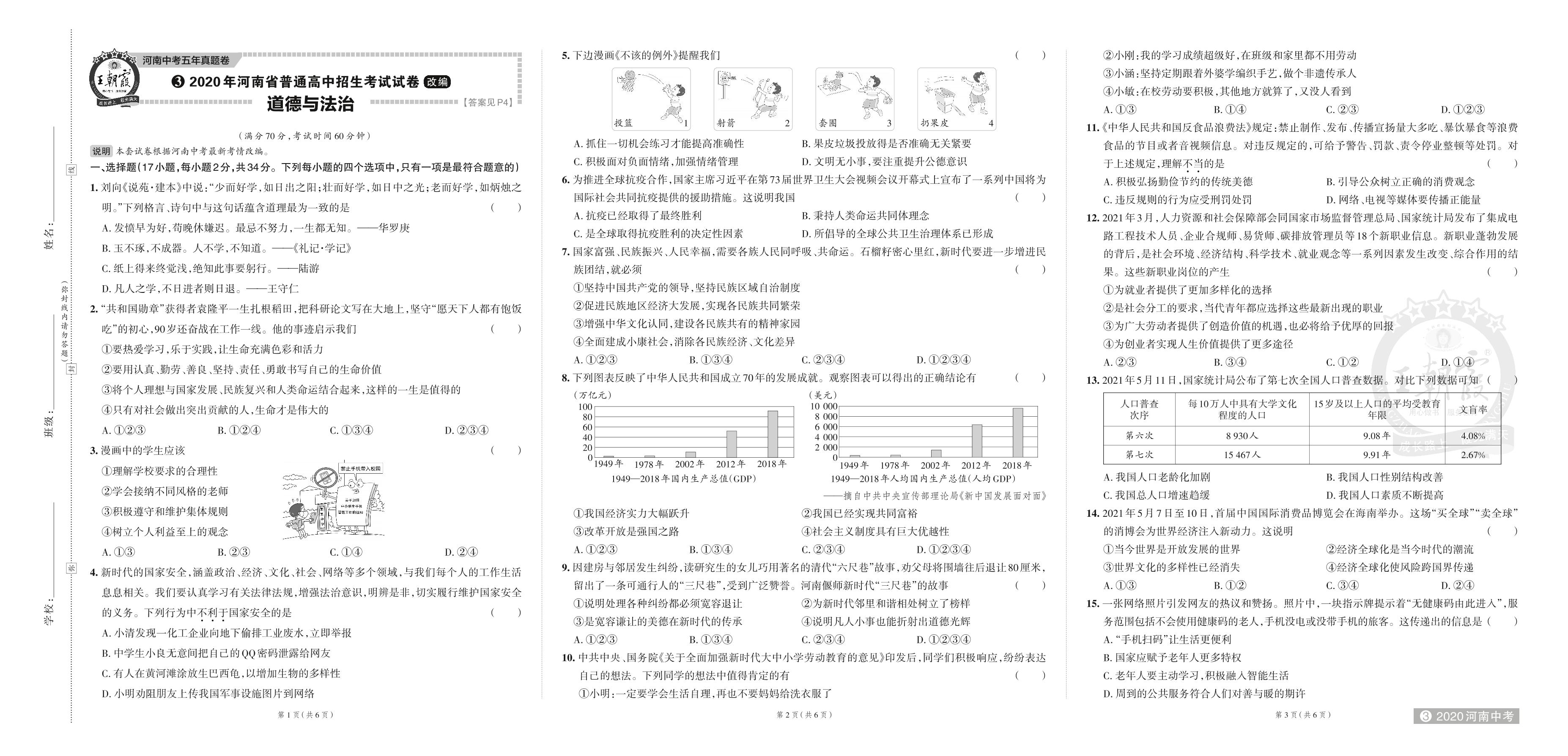 2020年河南省普通高中招生考试试卷(改编).道德与法治【3】