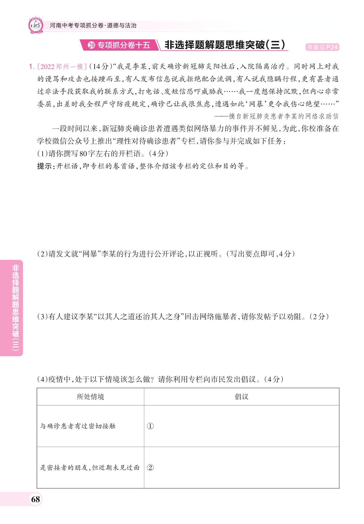 河南中考专项抓分卷十五 非选择题解题思维突破(三).道德与法治【20】