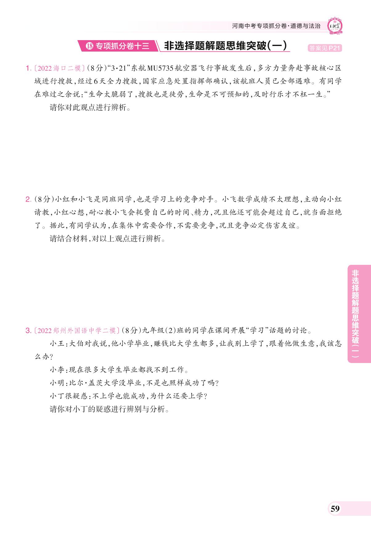河南中考专项抓分卷十三 非选择题解题思维突破(一).道德与法治【18】