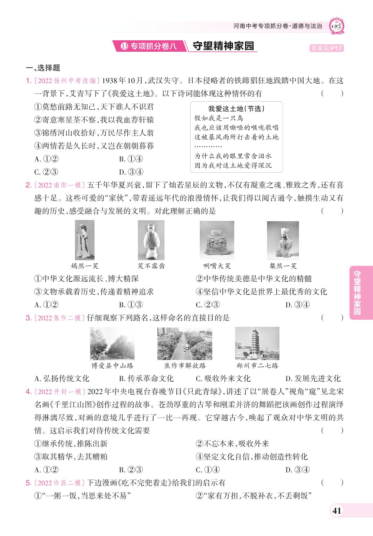 河南中考专项抓分卷八 守望精神家园.道德与法治【13】