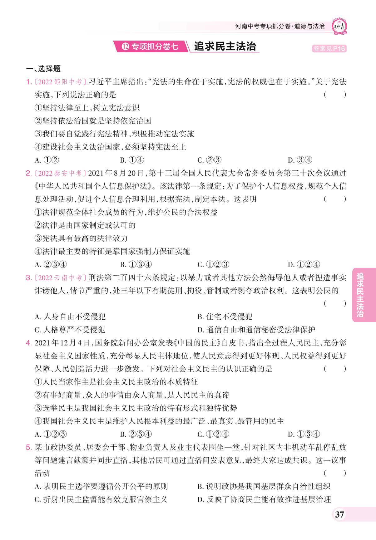 河南中考专项抓分卷七 追求民主法治.道德与法治【12】