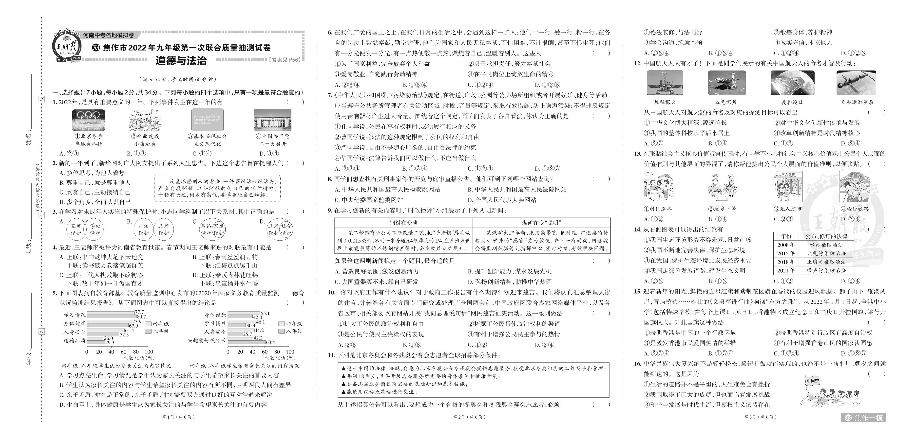 焦作市2022年九年级第一次联合质量抽测试卷.道德与法治【33】
