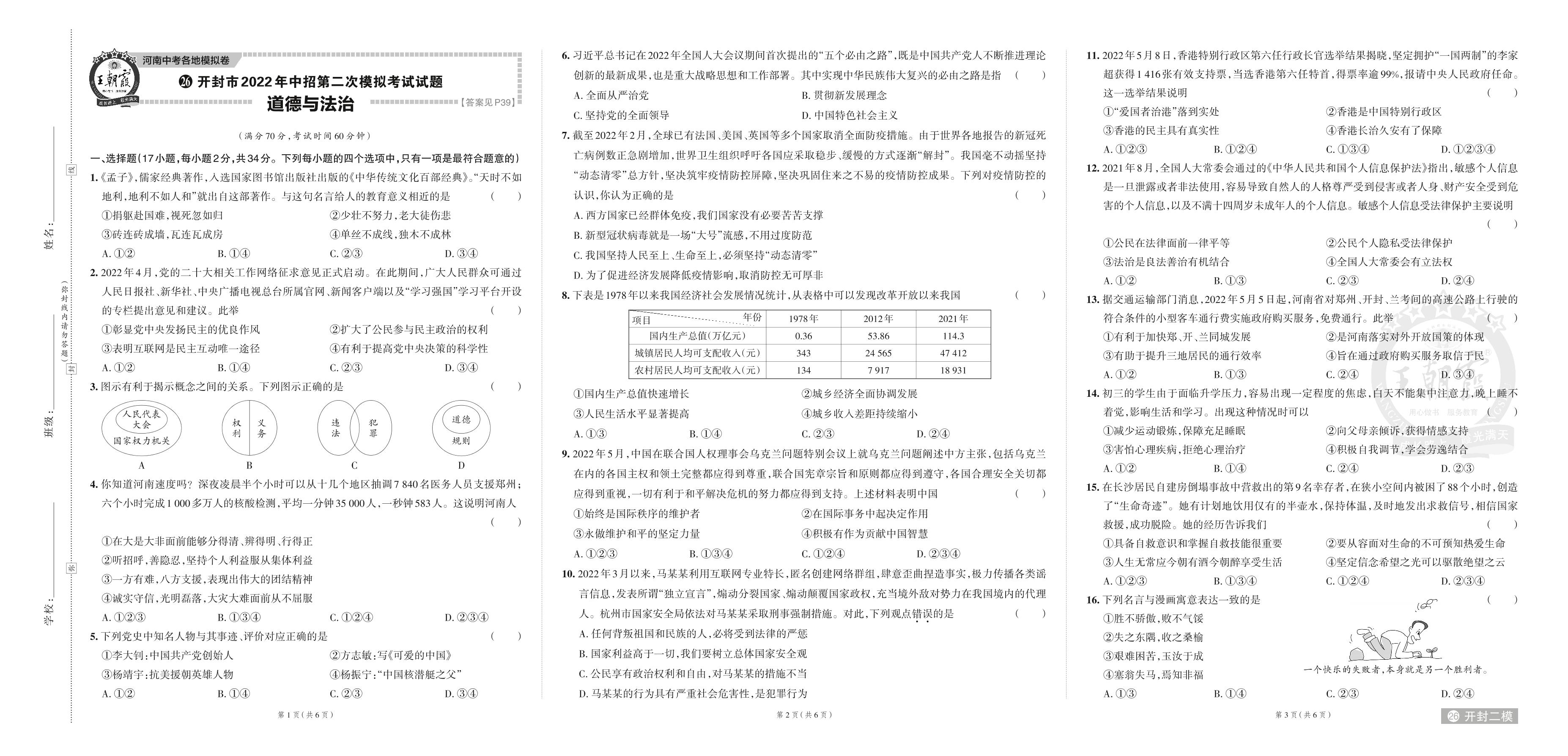 开封市2022年中招第二次模拟考试试题.道德与法治【26】