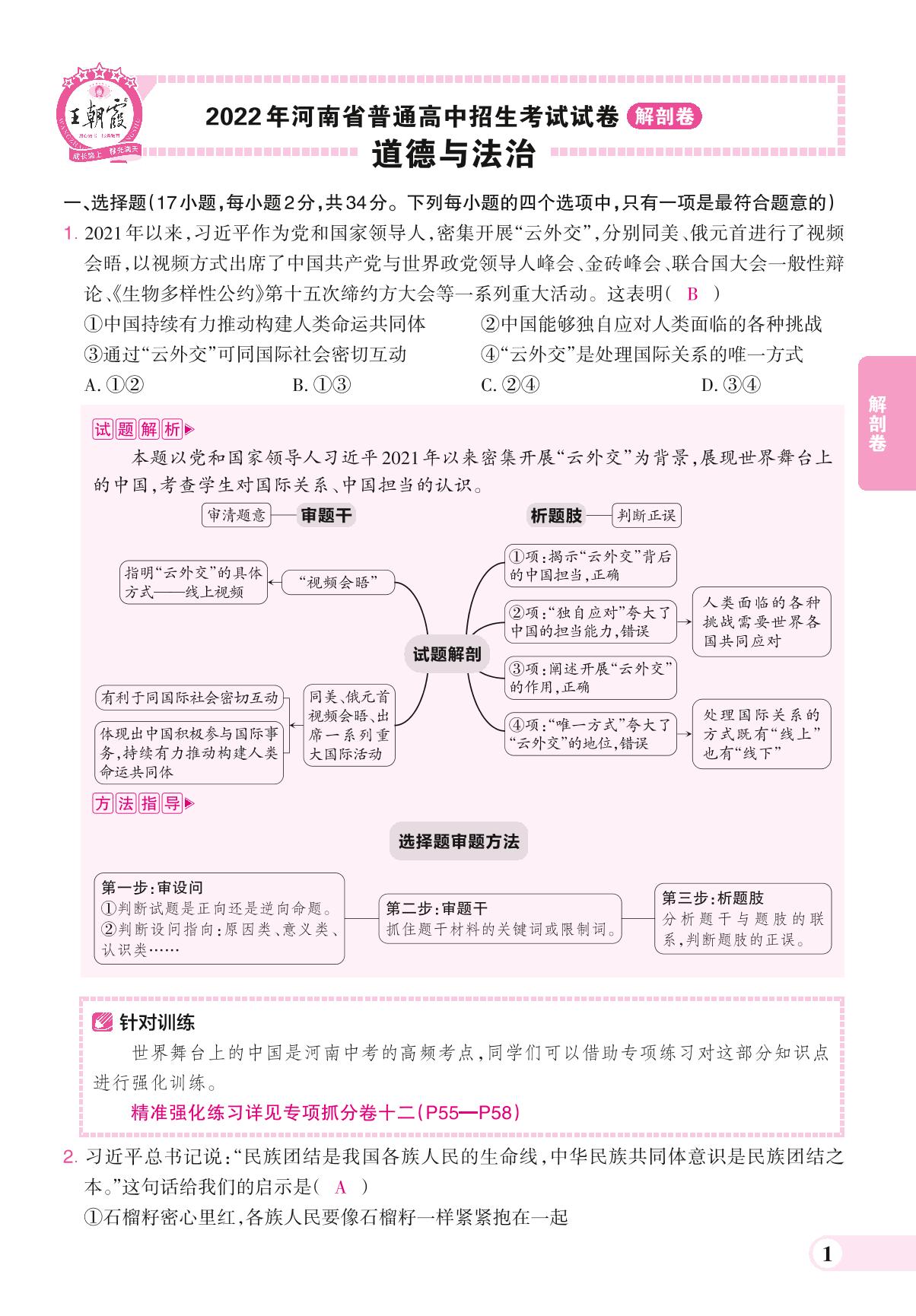 2022年河南省普通高中招生考试试卷(解剖卷).道德与法治